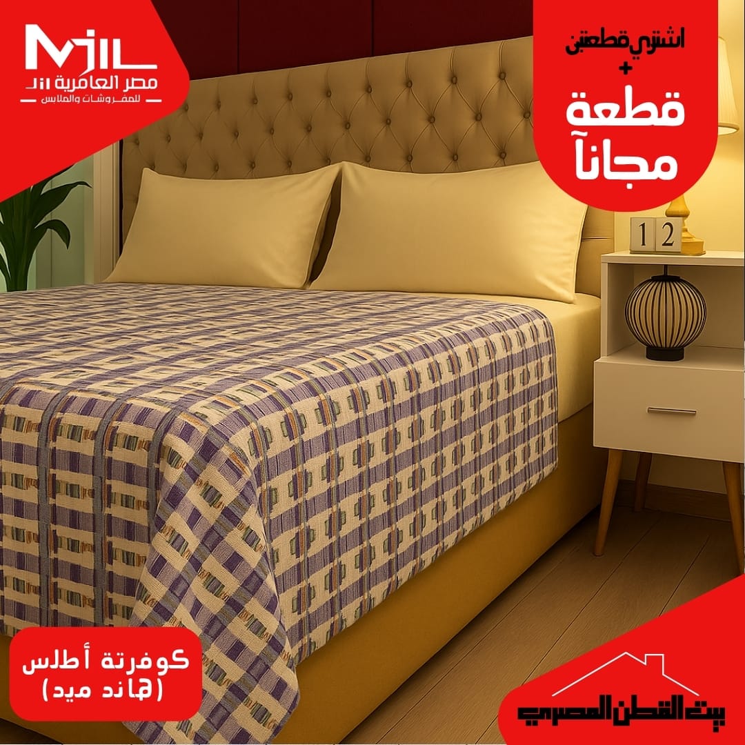 مصر العامرية للمفروشات بيقدّم خدمة تفصيل لأي مقاسات خاصة سواء ملايات أو أغطية أو كوفرات كنب، علشان القطع تناسب مساحتك بالظبط.