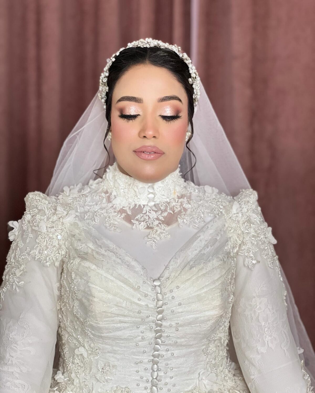 في يوم الفرح، دعاء بتكون مركزة جدًا على إن العروسة تطلع بأحلى صورة تعكس شخصيتها وتبان فيها ملامحها بشكل أنيق. بتختار الألوان بدقة عشان تتماشى مع الفستان ولون البشرة، وبتحرص إن المكياج يكون ثابت طول اليوم عشان العروسة تفضل مرتاحة وواثقة في نفسها.