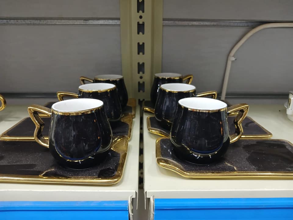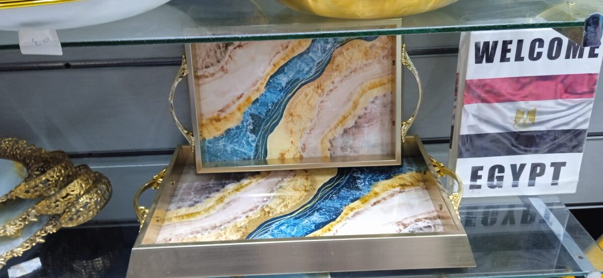 قسم السفرة والتقديم واخد اهتمام خاص. أطقم أطباق بورسلين وزجاج بألوان ونقوش هادية تناسب المودرن والكلاسيك، ومعاها كاسات عصير وفناجين قهوة وشاي. كمان فيه صواني تقديم وأباريق عملية، عشان الضيافة تبقى سهلة والسفرة شكلها متكامل ومنسّق.