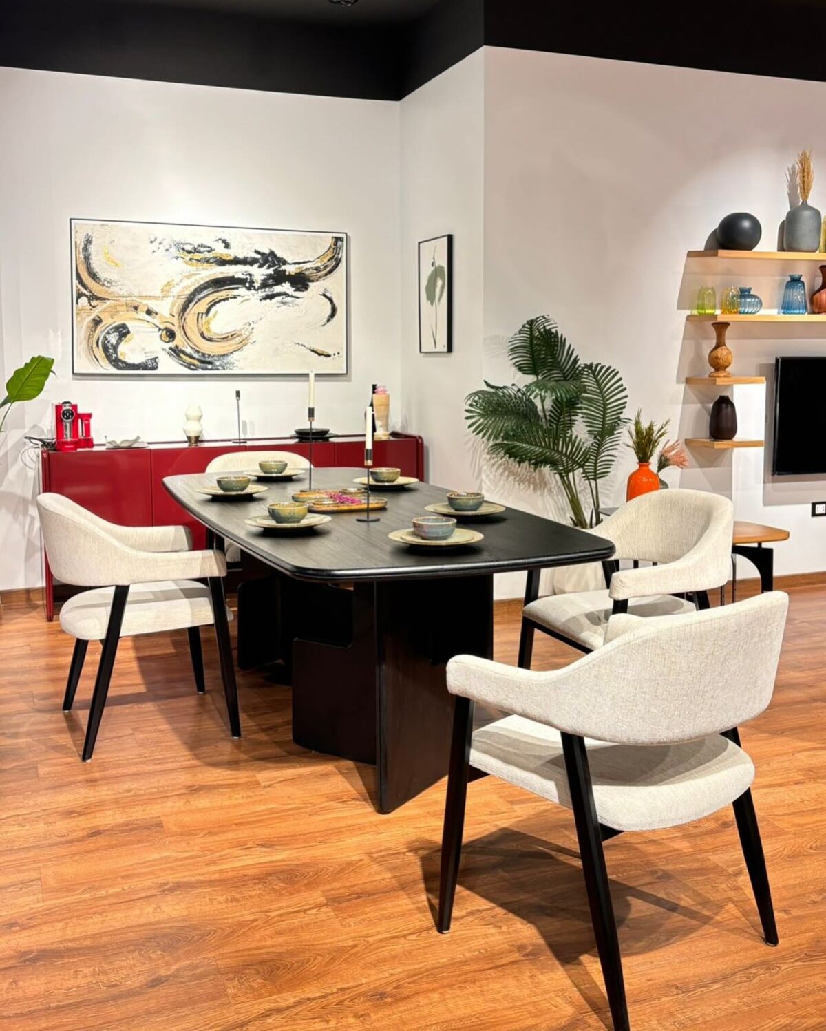 غرف السفرة كمان فيها تنوع كبير، الطاولات والكراسي تصميماتهم بتعتمد على البساطة والراحة، ومع ذلك فيها لمسة تصميم تفرق وتخلي شكل السفرة جذاب ومريح.