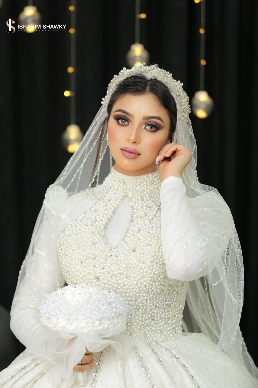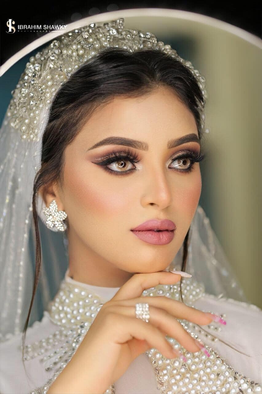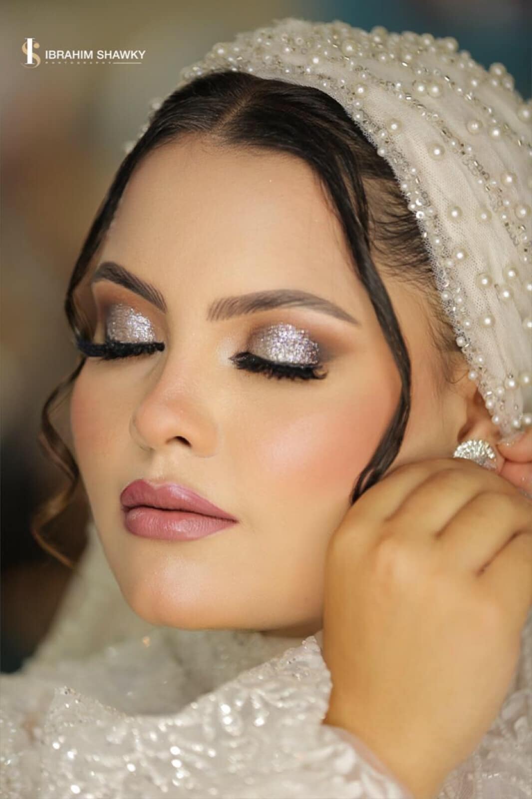 بالنسبة لمكياج العرايس، نور بتركز جدًا على التفاصيل. بتبدأ مع العروسة من أول جلسة استشارة بسيطة تفهم منها هي حابة شكلها يكون عامل إزاي، وتبتدي تقترح الألوان المناسبة للون البشرة، شكل العيون، والستايل العام للفستان والتسريحة. والنتيجة دايمًا بتكون مريحة ومتناسبة مع شخصية العروسة، مش مجرد لوك متكرر.