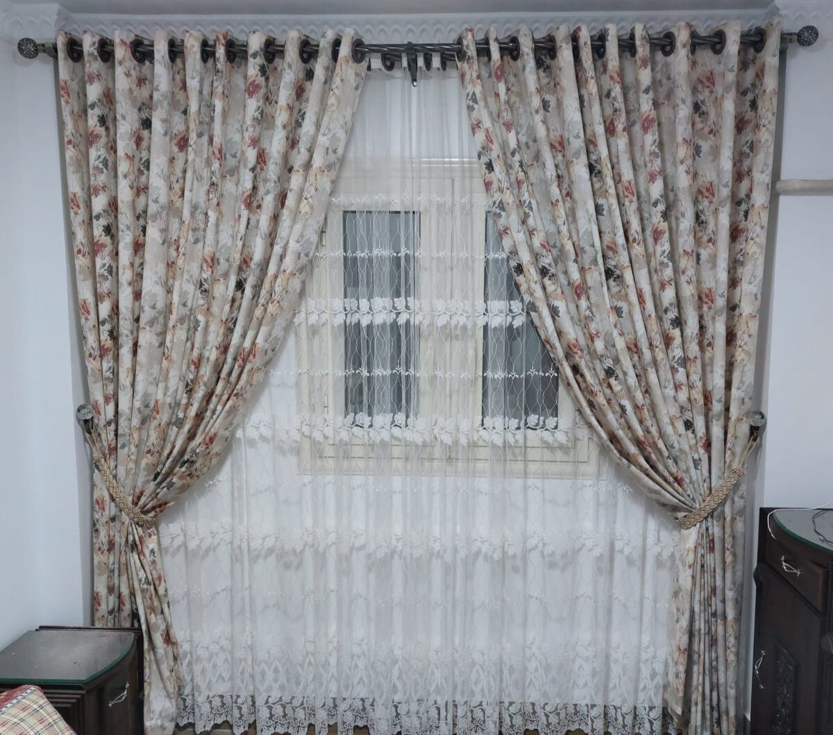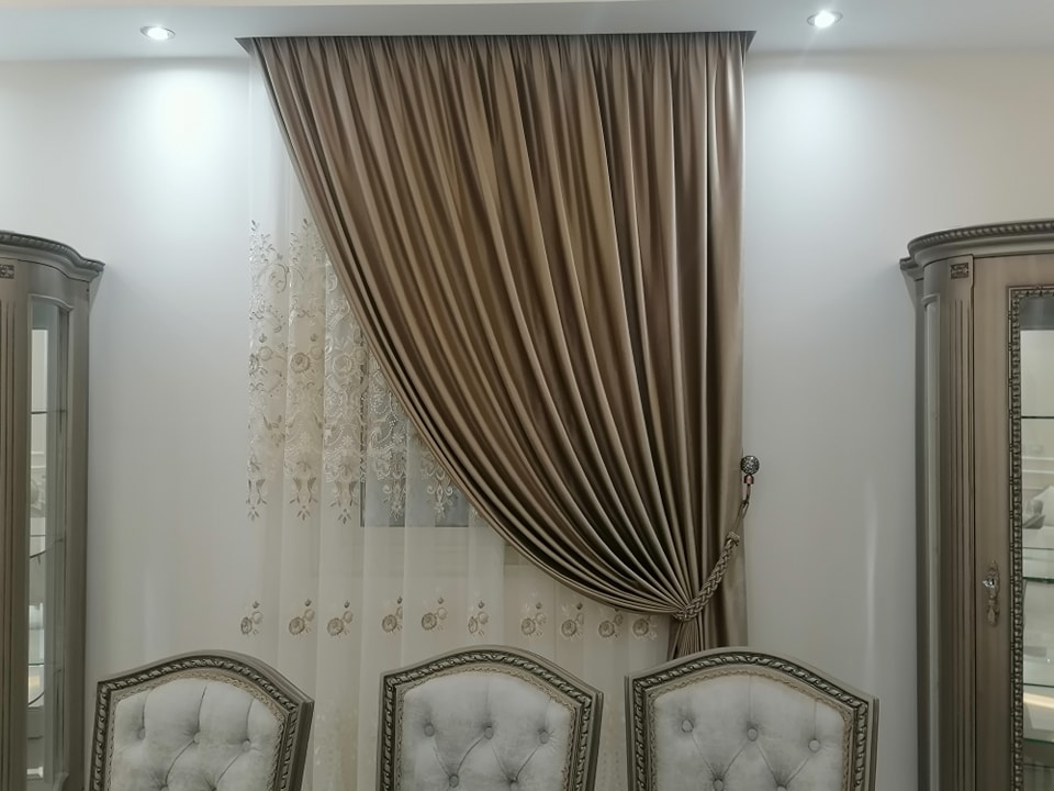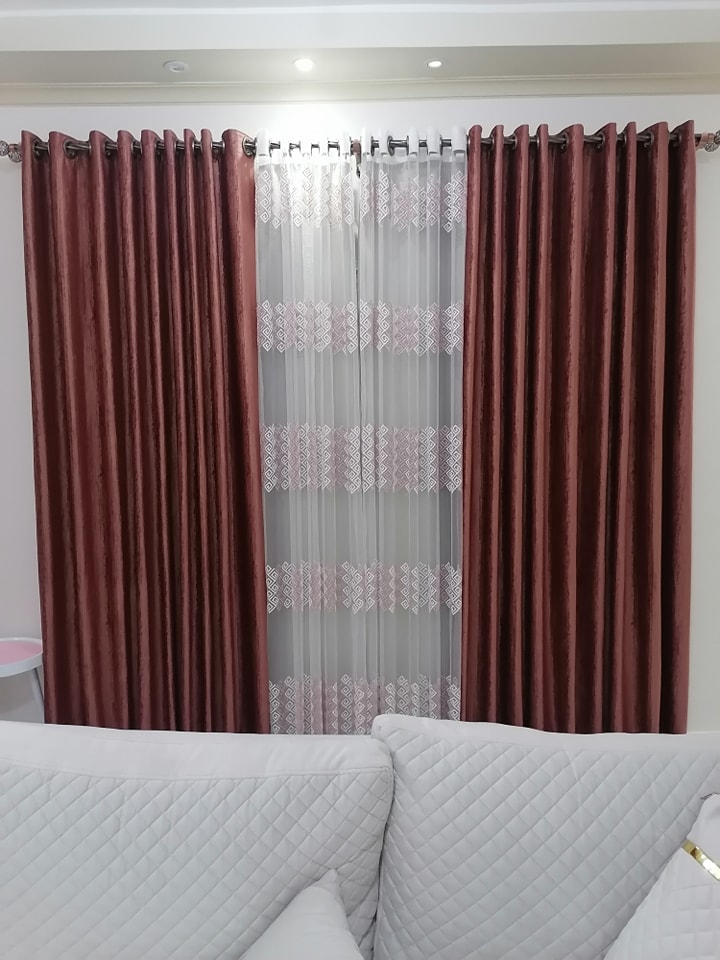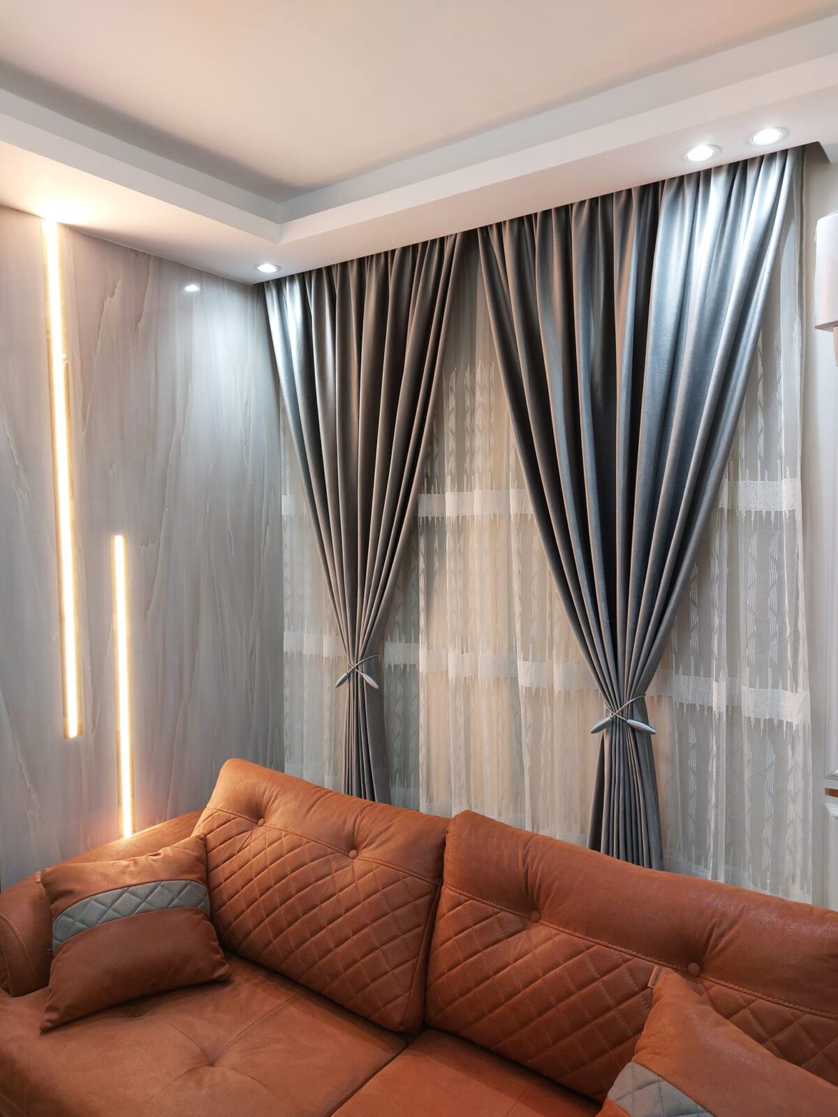 - ستائر مزدوجة: طبقة شفافة مع طبقة تقيلة للتحكم في النور والخصوصية.
