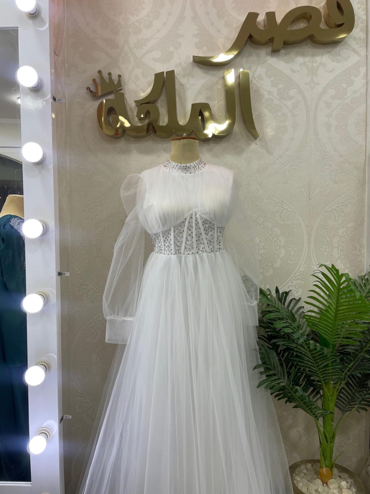 كمان مش هتحتاجي تلفي كتير علشان تكملي إطلالتك، لأن عندهم إكسسوارات زي الطرح، التيجان، الأحزمة، والجوانتي، وكل القطع الصغيرة اللي بتكمل شكل العروسة في يومها الكبير.