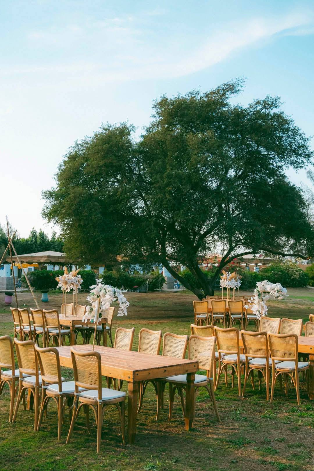 • طاولات وكراسي مكسوة بكسوة متناسقة