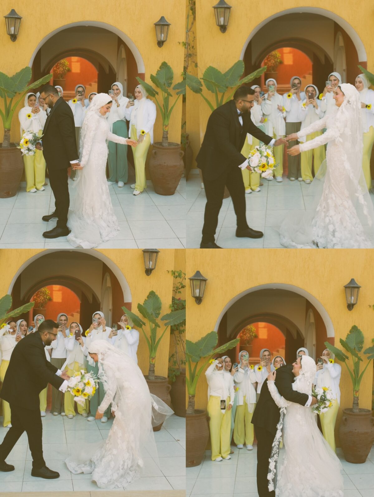 يوم الفرح نفسه هو اليوم اللي بيظهر فيه أسلوب Mo'men Bayoumi الحقيقي. بيهتم بتصوير كل لحظة صغيرة ممكن تتفلت، زي ضحكة بسيطة بين أصحاب العريس، نظرة خجولة من العروسة، حضن دافي من الأم، أو لحظة استعداد قبل دخول القاعة. بيعتمد على إنه يتواجد وسط الحدث من غير ما يبان أو يضايق حد، وده اللي بيخلي الصور فيها حياة ومشاعر حقيقية من غير تكلف.