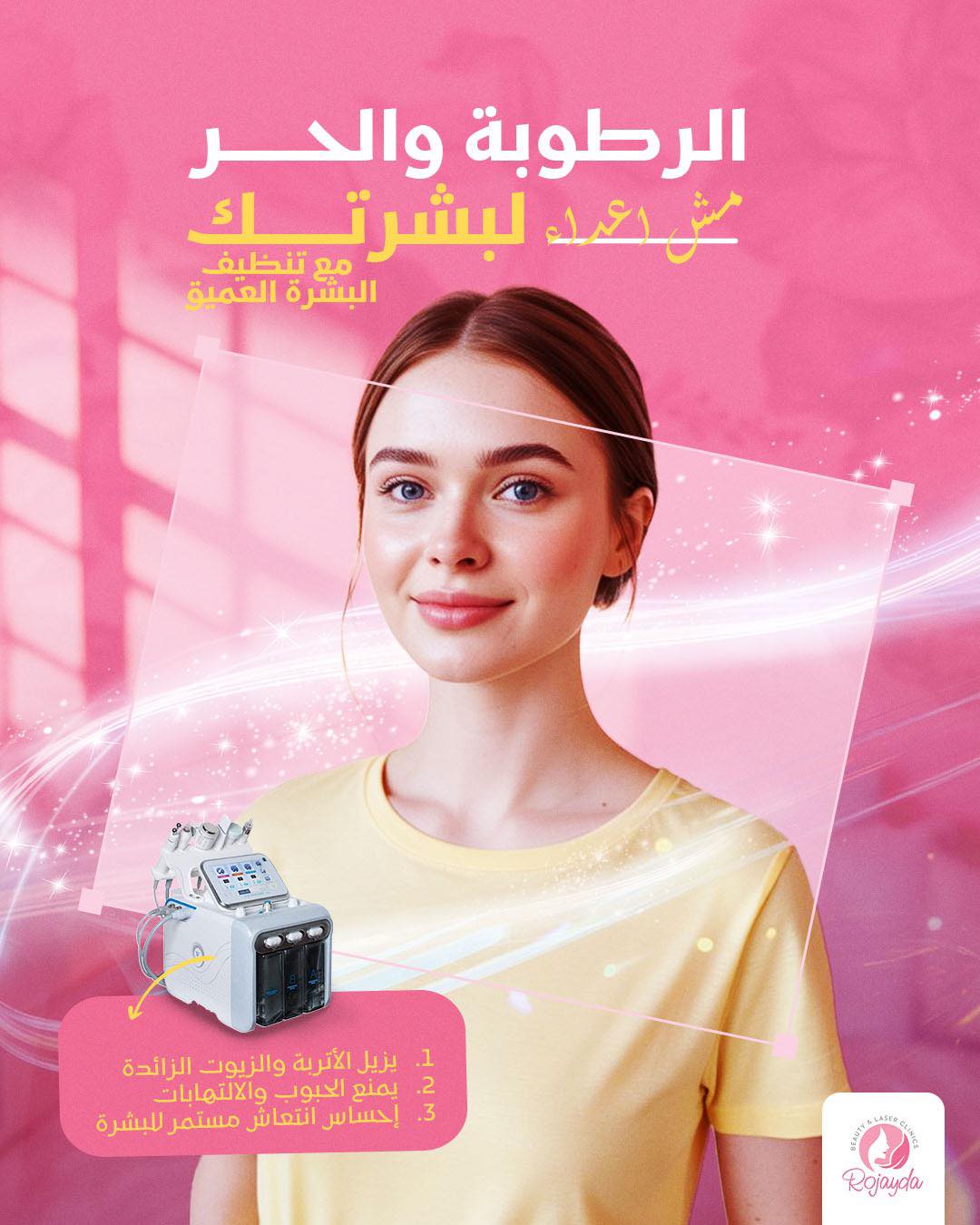 في Rojayda Clinics بيبدأوا بالبشرة، لأنها الأساس لأي إطلالة ناعمة وجذابة. العيادة بتقدم جلسات تنظيف عميق بتشيل أي شوائب أو دهون وبتخلي البشرة ناعمة وصافية. كمان في جلسات نضارة وتفتيح وتوحيد لون البشرة بتدي للوش إشراقة طبيعية وتخليه جاهز للميكب في يوم الفرح. العرايس بيحبوا الجلسات دي لأنها بتدي لمعة ناعمة ومظهر صحي من غير مبالغة، والعريس كمان ممكن يعمل جلسة بسيطة تدي لبشرته مظهر مريح وطبيعي في الصور.