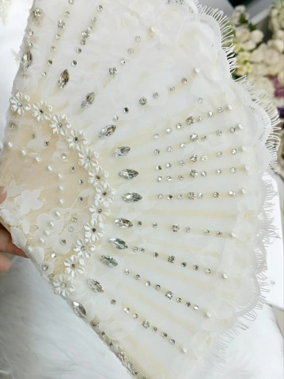 • طرحات تول أو دانتيل، مطرزة أو سادة، بأطوال مختلفة تناسب ستايل الفستان.