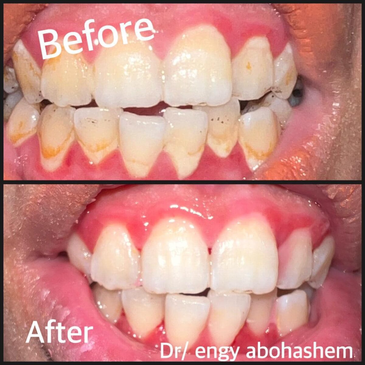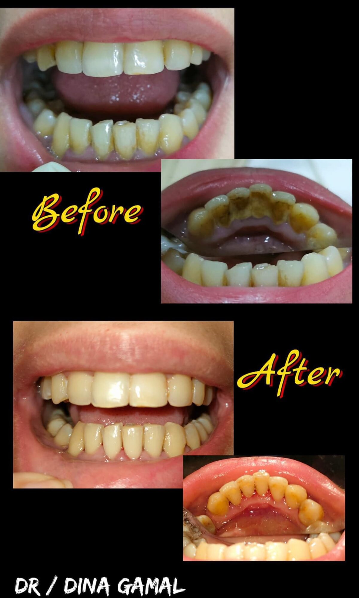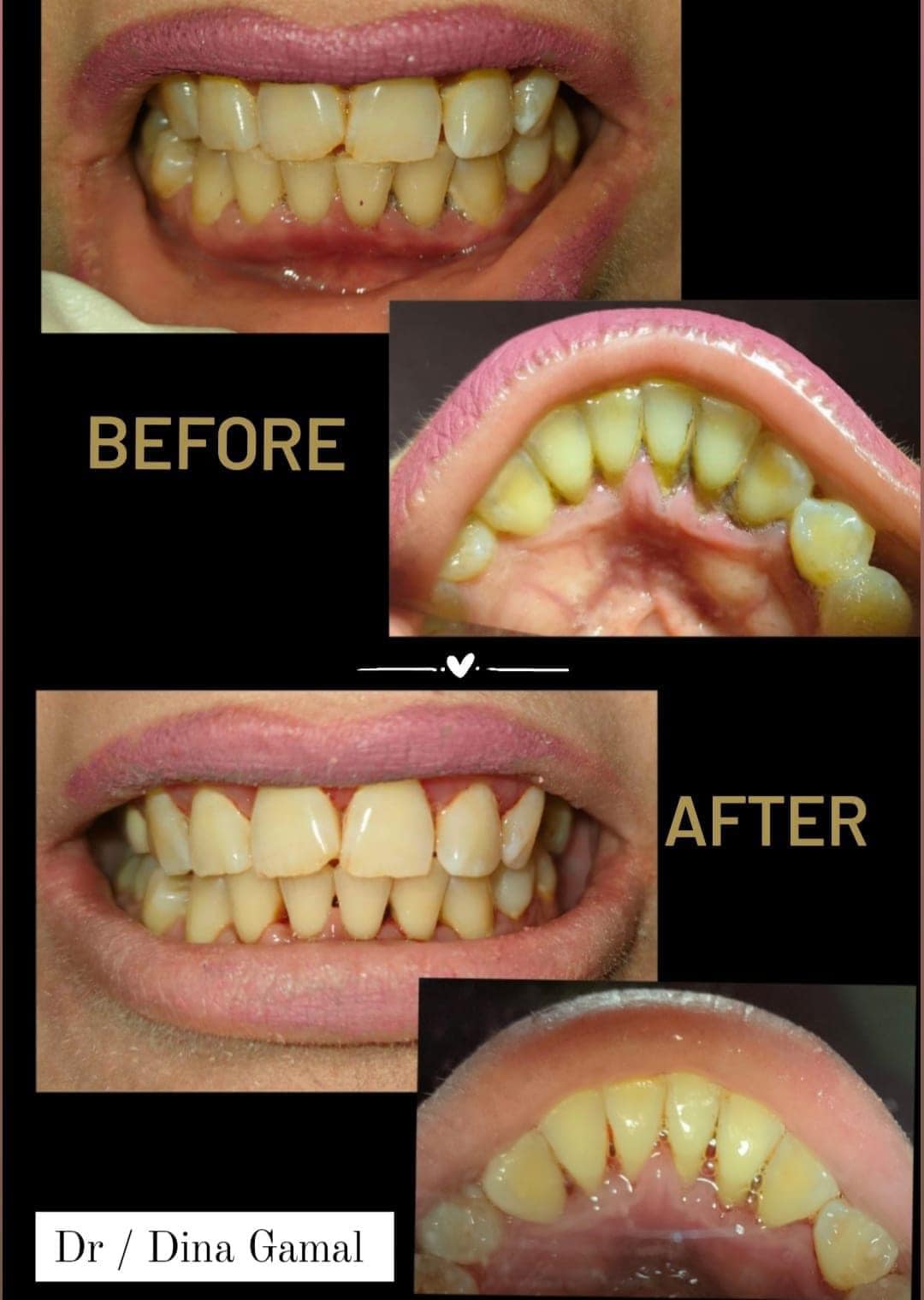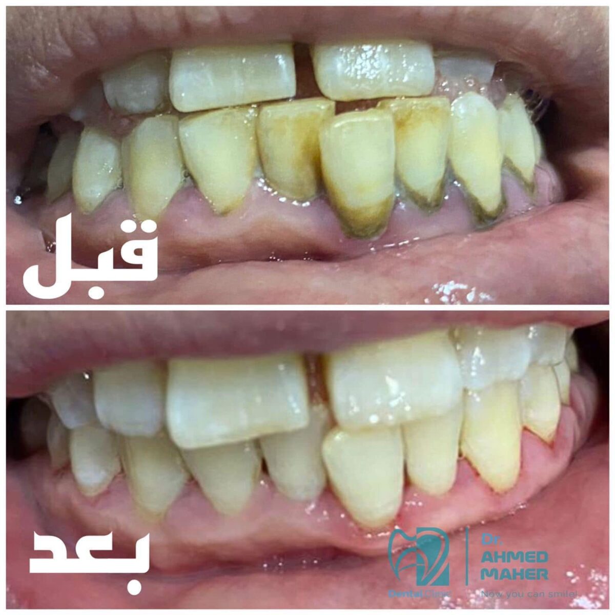 أول خطوة علاجية عادةً بتكون تنظيف عميق، عيادة دكتور أحمد ماهر معتمدة على جهاز الموجات فوق الصوتية اللي بيشيل الرواسب الجيرية والبلاك من تحت اللثة وعلى السطح الخارجي للأسنان بلطف ومن غير وجع، وبعدين بينتقلوا لمرحلة التلميع بمعجون طبي مخصوص بيرجع لمينا الأسنان نعومتها وبيديها لمعان طبيعي. وعلى مدار الجلسة هتاخدوا نصائح عن اختيار الفرشاة والمعجون والخيط المناسبين لحالتكم وكمان عن الطريقة الصحيحة للاستخدام في البيت علشان تحافظوا على نظافة ونعومة أسنانكم.