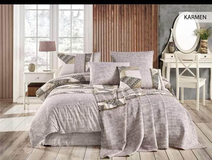 في ريش نعام للمفروشات هتلاقي أطقم سرير قطنية 100% بخياطة متقنة وألوان متناسقة. التصميمات متنوعة بين الكلاسيك البسيط والمودرن الجريء، علشان تختار اللي يناسب ذوقك. كل طقم معمول بخامات ناعمة تشبه الملمس الحريري وبتدي إحساس فخم ومريح في نفس الوقت.