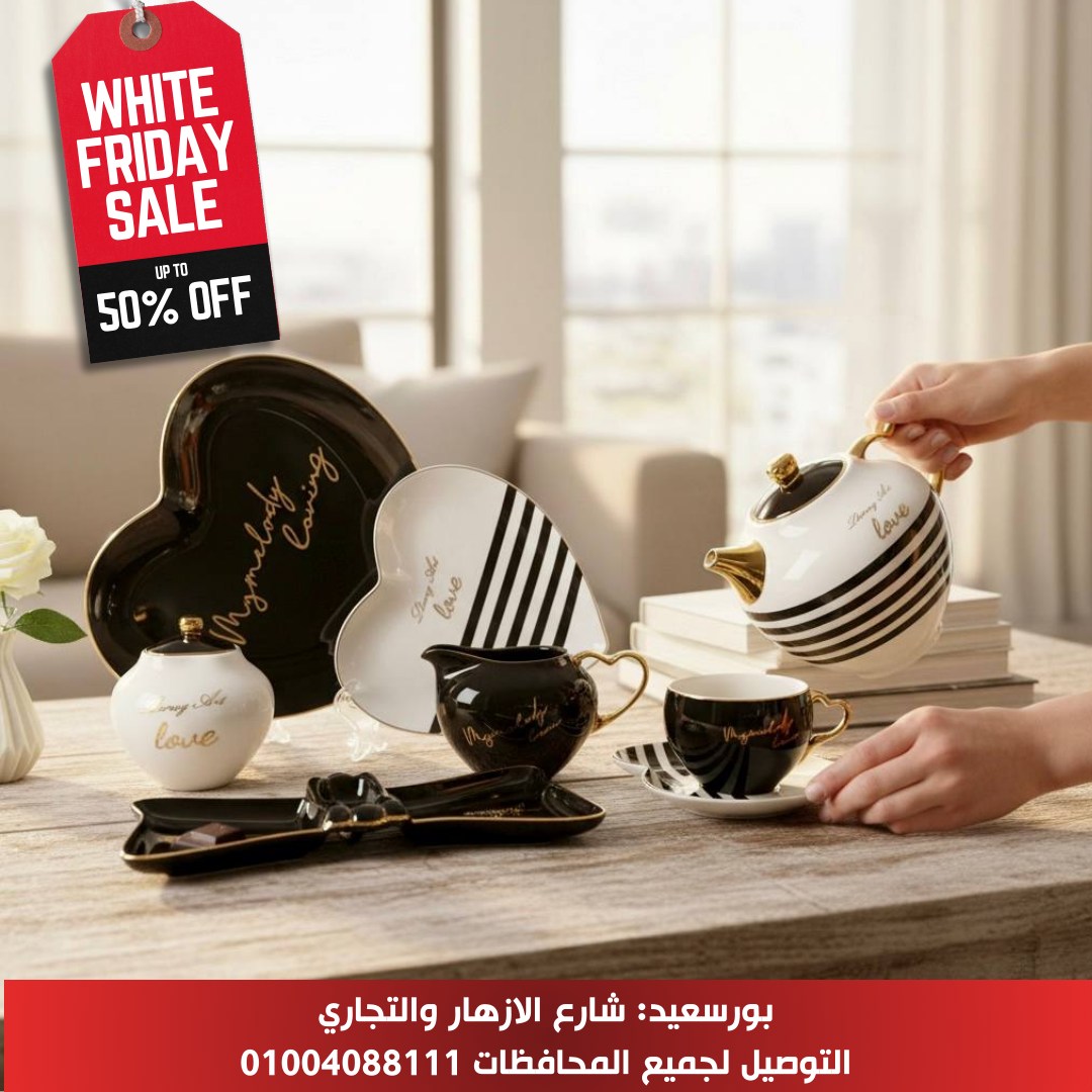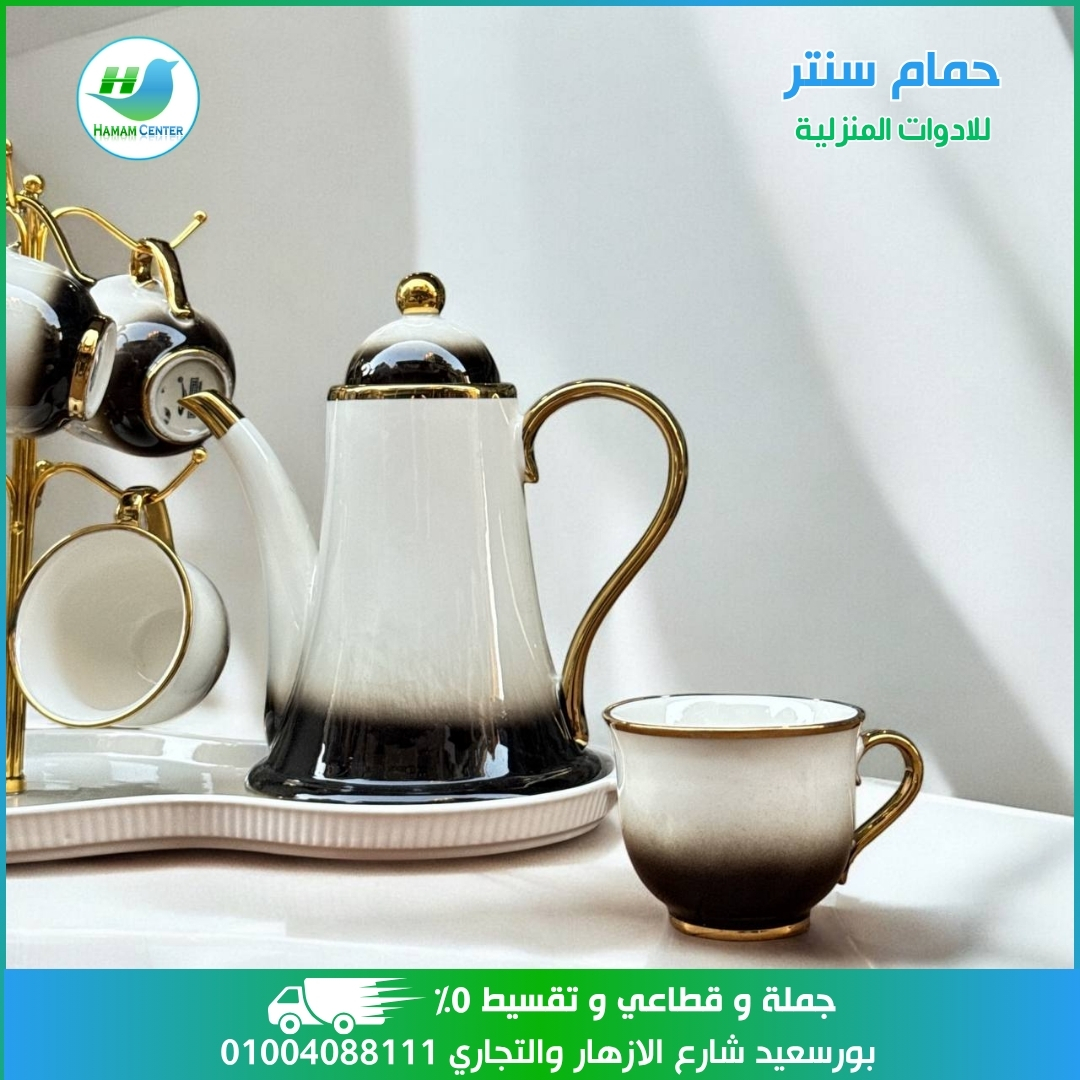 أما قسم السفرة والتقديم، فبيضم أطقم أطباق بورسلين وزجاج بألوان ونقوش راقية تناسب كل الأذواق سواء مودرن أو كلاسيك. كاسات عصير، فناجين شاي وقهوة، صواني تقديم، وأباريق عملية بتدي شكل متكامل للسفرة وتخليها دايمًا جاهزة للضيافة في كل المناسبات.