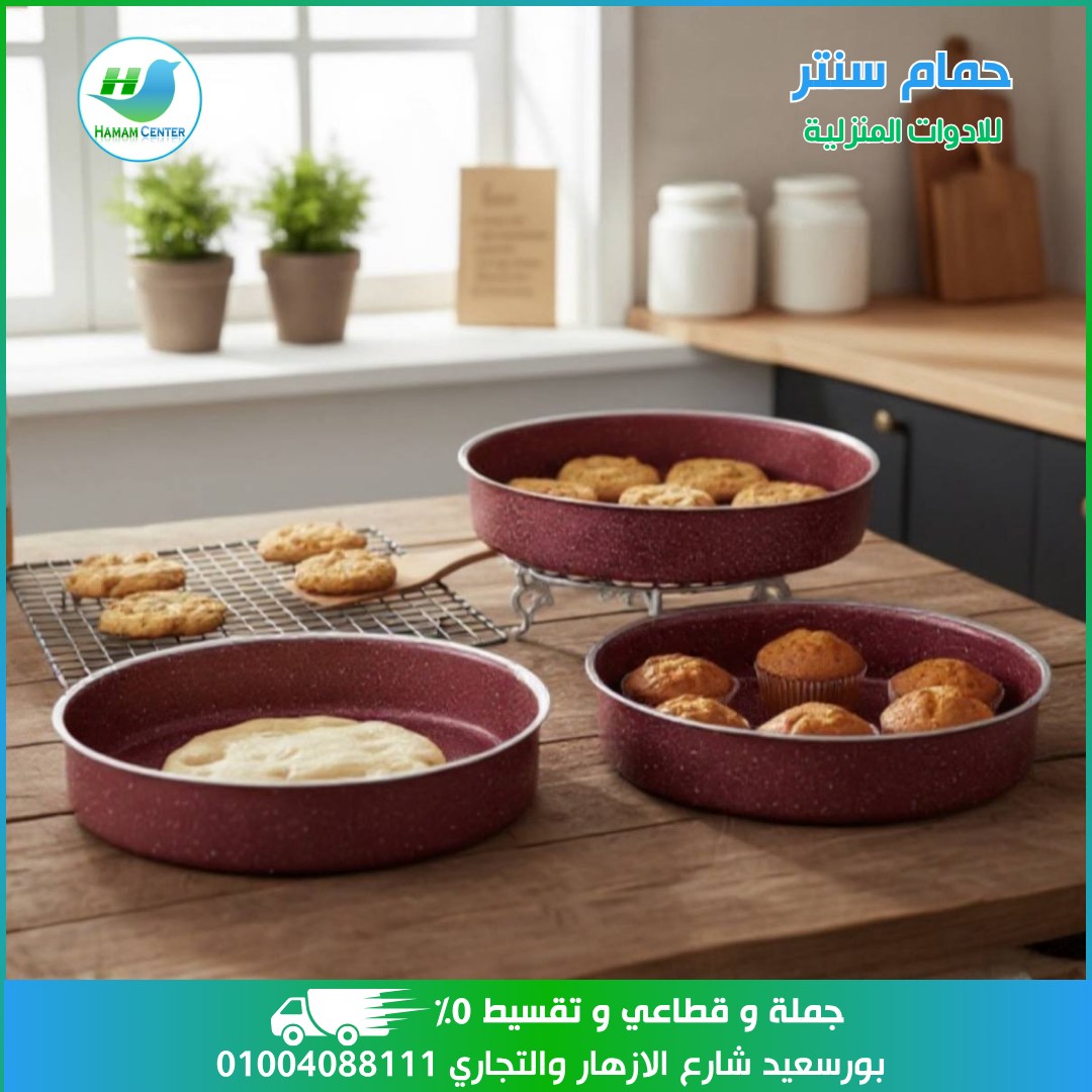 في قسم الطهي، حمام سنتر للأدوات المنزلية بيعرض قدور ومقالي ستانلس ستيل مقاوم للصدأ بخامات قوية وأحجام مختلفة، ومعاها مقالي غير لاصقة بتتحمّل الاستخدام اليومي وبتوزّع الحرارة كويس. كمان فيه صواني فرن، قوالب سيليكون للحلويات، وأواني زجاج حراري بتصميمات شيك تقدّمي فيها الأكل على السفرة بشكل أنيق.