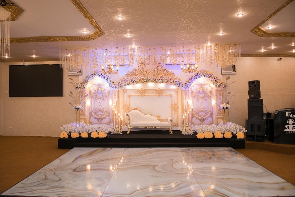 الكوشة بتكون في مكان واضح في مقدمة القاعة بحيث كل الحضور يقدر يشوفها بسهولة