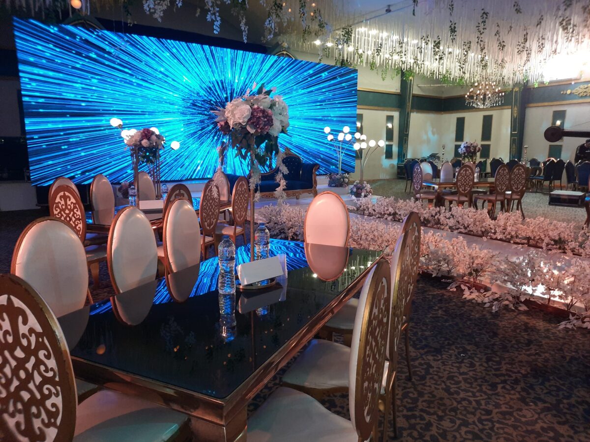 ممكن تضيف إضاءات بسيطة زي LED أو سبوت لايت لتعزيز فقرات الحفل بشكل واضح
