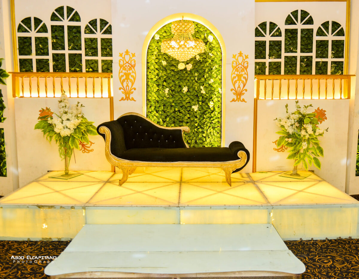 الكوشة موجودة في مقدمة القاعة بحيث كل الحضور يقدر يشوف كل التفاصيل