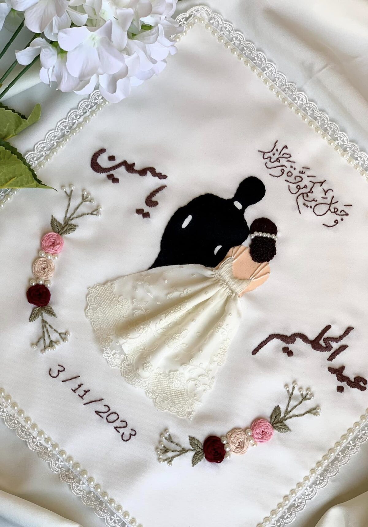 - دبابيس عروسة مكتوب عليها اسمك أو كلمة "عروسة".