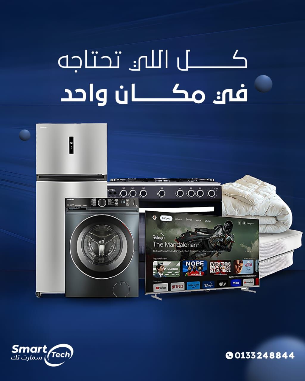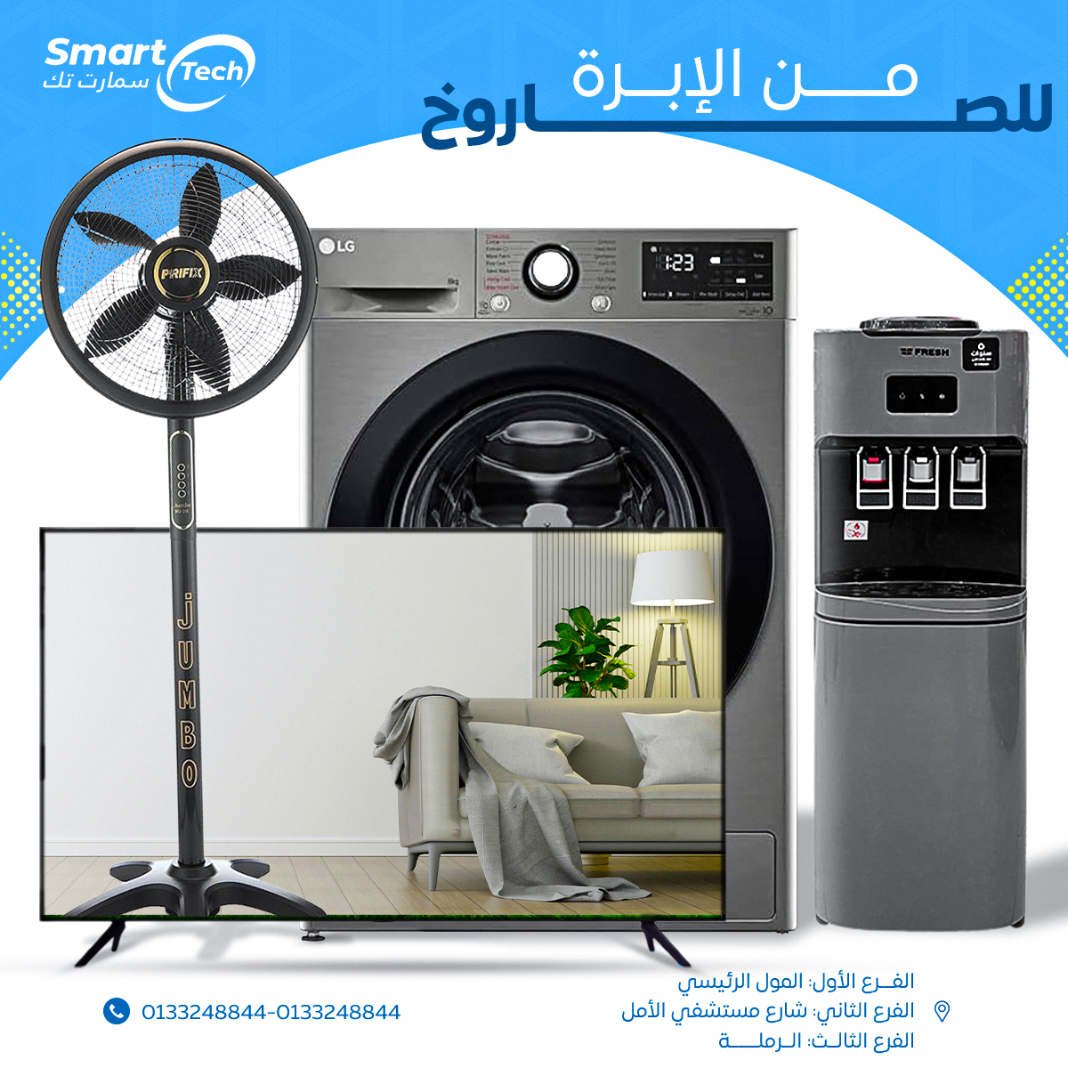 كمان عندهم أجهزة كهربائية تانية زي التلاجات، الغسالات، البوتاجازات، الشاشات، والسخانات. ده غير الأجهزة الصغيرة اللي كل بيت محتاجها زي الميكروويف، الكاتيل، العجان، والخلاط. يعني مش بس تكييفات، لأ كمان باقي الأساسيات اللي مش ممكن تستغنى عنها في بيتك.
