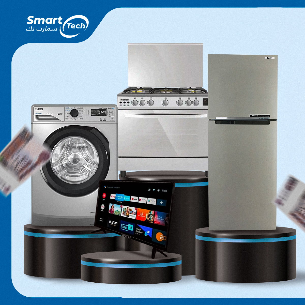 سمارت تك بيهتم بشكل واضح بتوفير أجهزة التكييف بكل أنواعها، سواء سبليت أو شباك أو متنقل، وده بيخلّي ناس كتير تروحه تحديدًا لما الجو يبدأ يحرّ، خصوصًا في الصيف. المكان بيعرض ماركات زي شارب، كاريير، يونيون إير، فريش، ال جي، وغيرهم، وده بيدي فرصة للزبون إنه يختار اللي يناسبه في السعر والكفاءة واستهلاك الكهرباء.