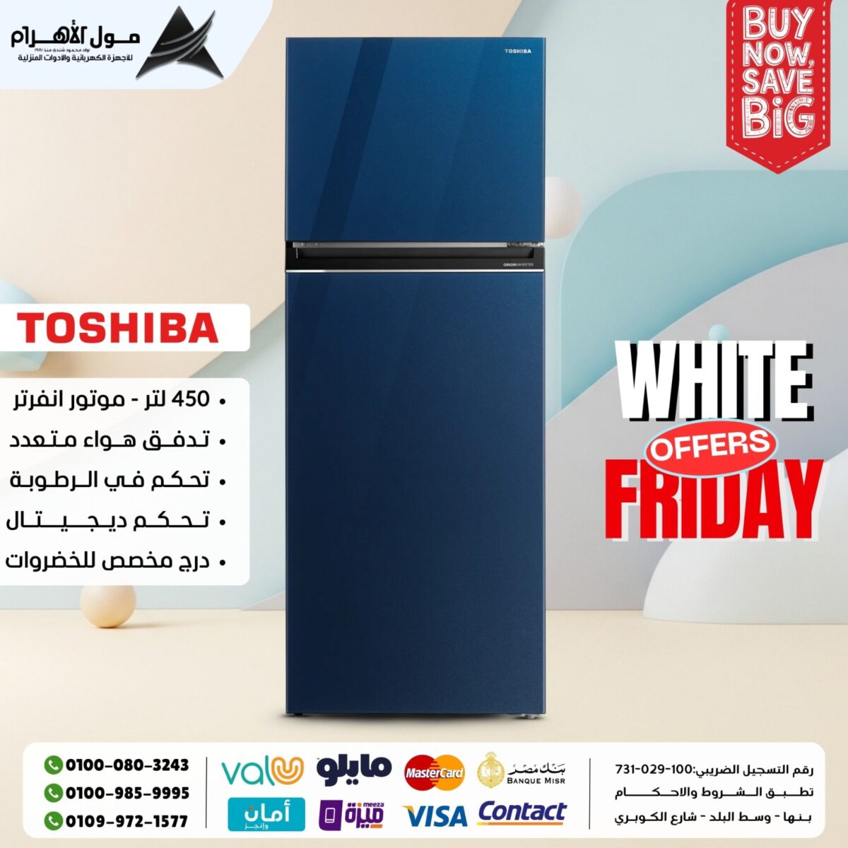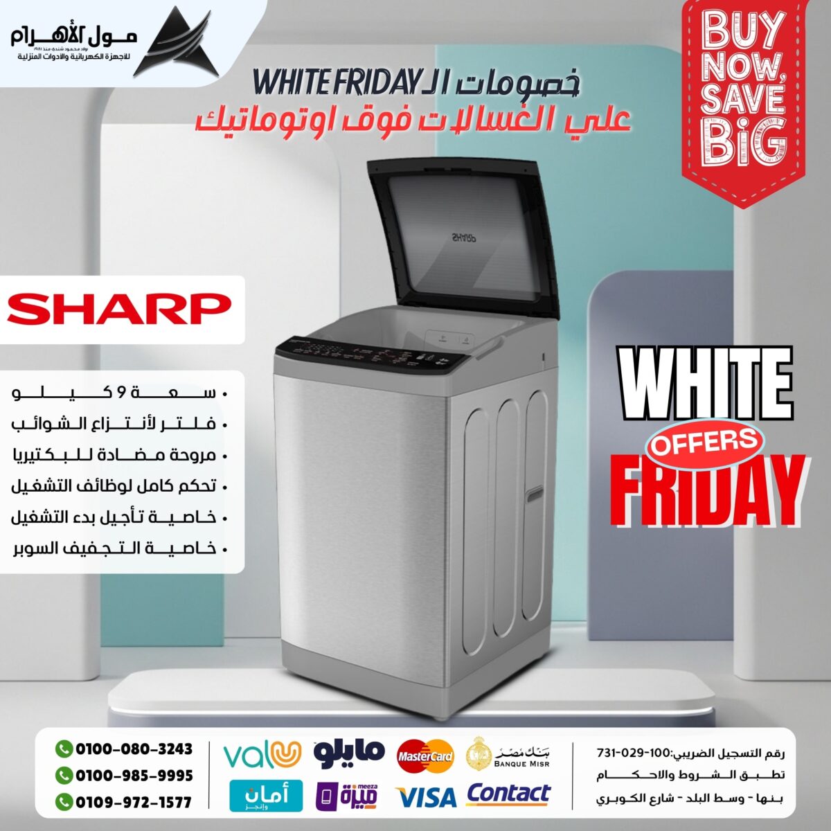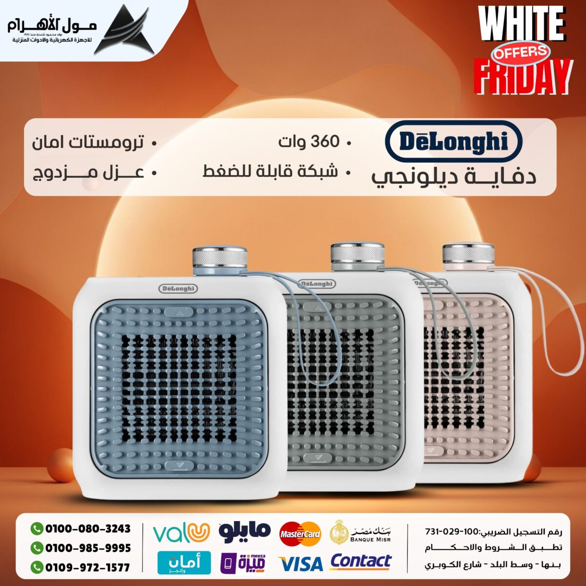 اللي يميز مول الأهرام إنه بيقدم اختيارات من ماركات مختلفة، يعني تقدر تلاقي أجهزة من شركات كبيرة معروفة زي شارب، تورنيدو، سامسونج، بيكو، فريش، توشيبا، وغيره، وفي نفس الوقت تلاقي اختيارات تانية بأسعار أقل تناسب الناس اللي عايزة توفر.