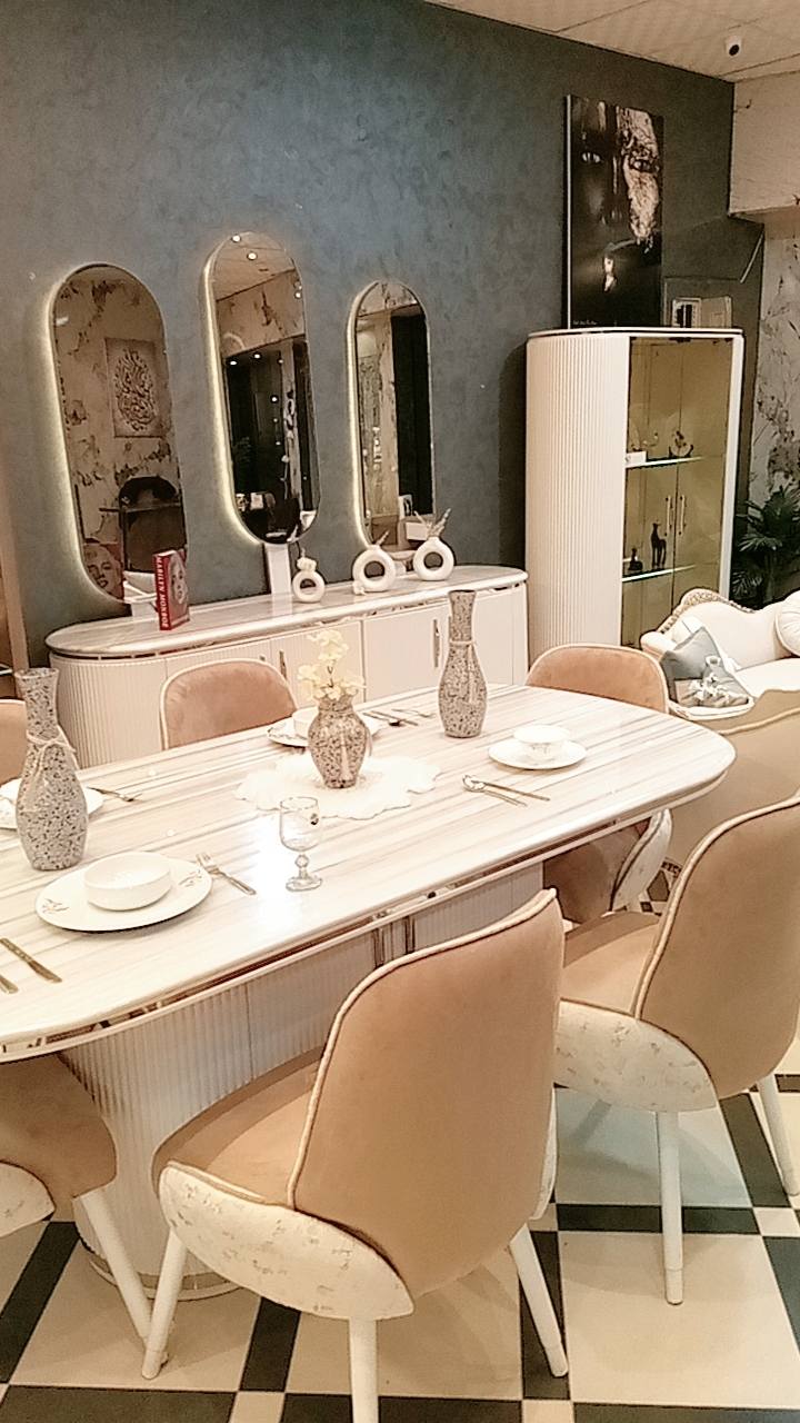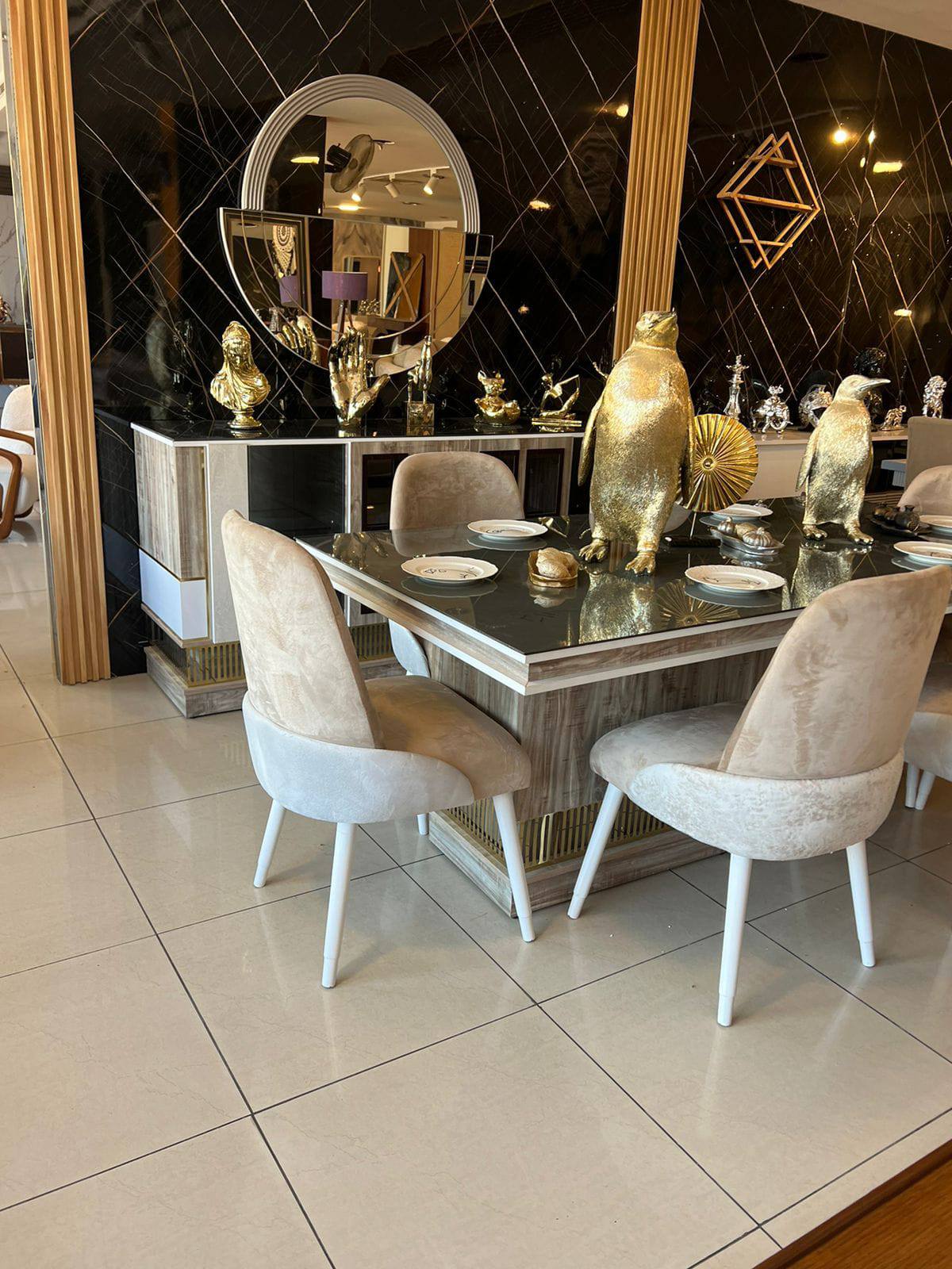 أما السفرة، فالمعرض بيقدم طاولات وكراسي بأحجام وخامات مختلفة، من التصميمات البسيطة للموديلات الفخمة، وبتناسب العائلات الصغيرة والكبيرة.