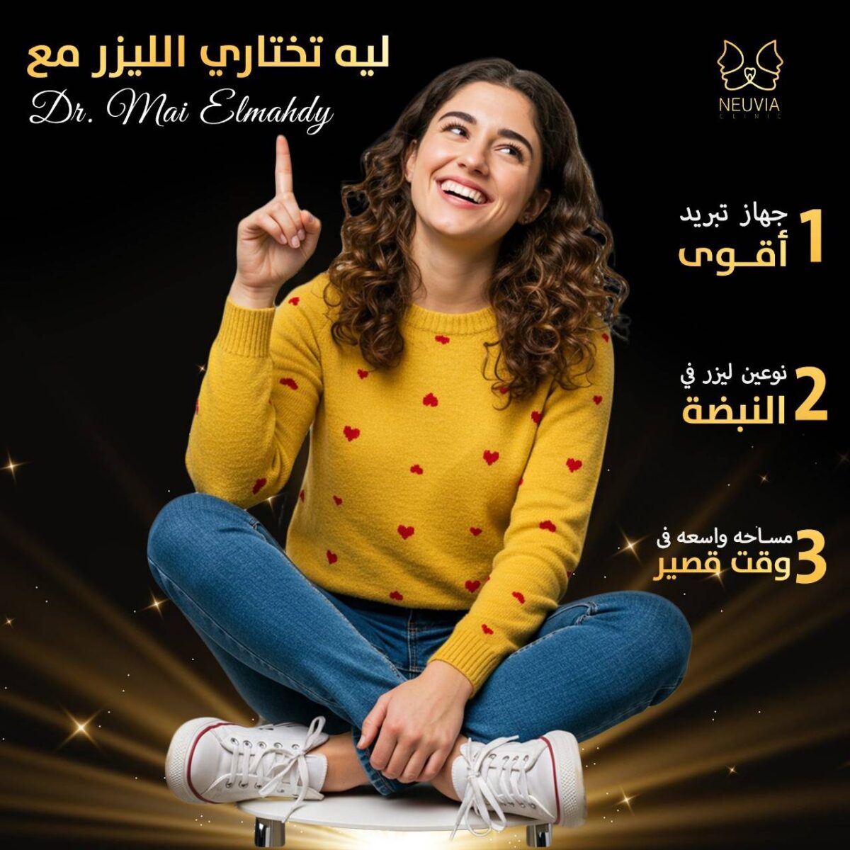 الجهاز المستخدم في إزالة الشعر بيكون مناسب لكل أنواع البشرة، وبيوفر نتيجة ثابتة بأقل إحساس بالألم. الجلسات بتتعمل في وقت سريع، وفيه اهتمام بالتعقيم والنظافة.