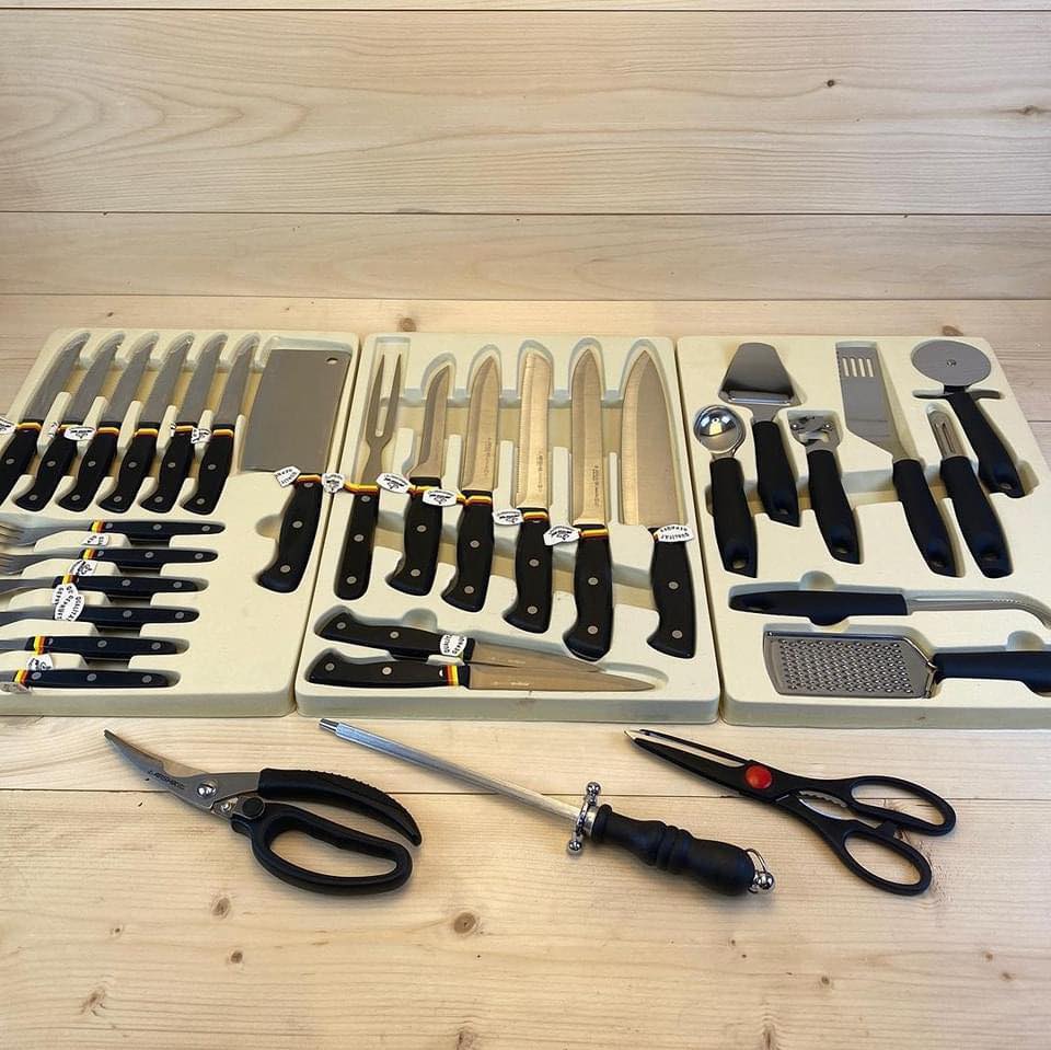 مش بس كده، كمان هتلاقي كل أنواع رفايع المطبخ اللي بتسهل عليكي الطبخ والترتيب، زي السكاكين، المبشرات، المصافي، المقاشط، المقصات، أدوات التقشير، والملاعق السيليكون والخشب. الحاجات دي كلها مش بس شكلها حلو، لكن كمان خاماتها محترمة وتعيش معاكي لفترة طويلة.
