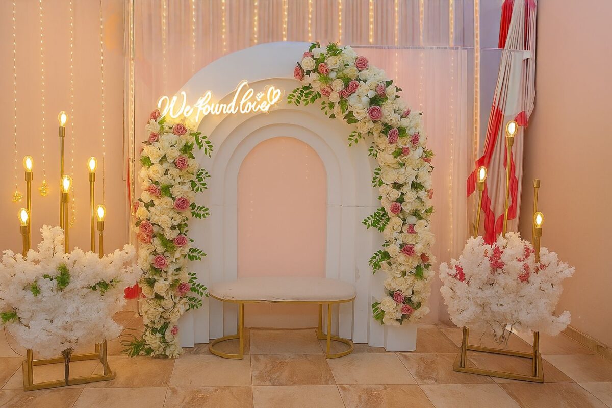 واحدة من الحاجات اللي بتميزهم جدًا إنهم بيحبوا يدخلوا عناصر غير تقليدية في تصميماتهم، زي البالونات، الإضاءة الخفيفة، ستاندات ورود معمولة يدوي، وأركان تصوير بتخلي الصور تطلع شكلها عالمي. كله معمول بذوق، وبأفكار جديدة مش منتشرة، وده اللي بيخلي الناس تفتكر ديكور Cool Party بعد الفرح.