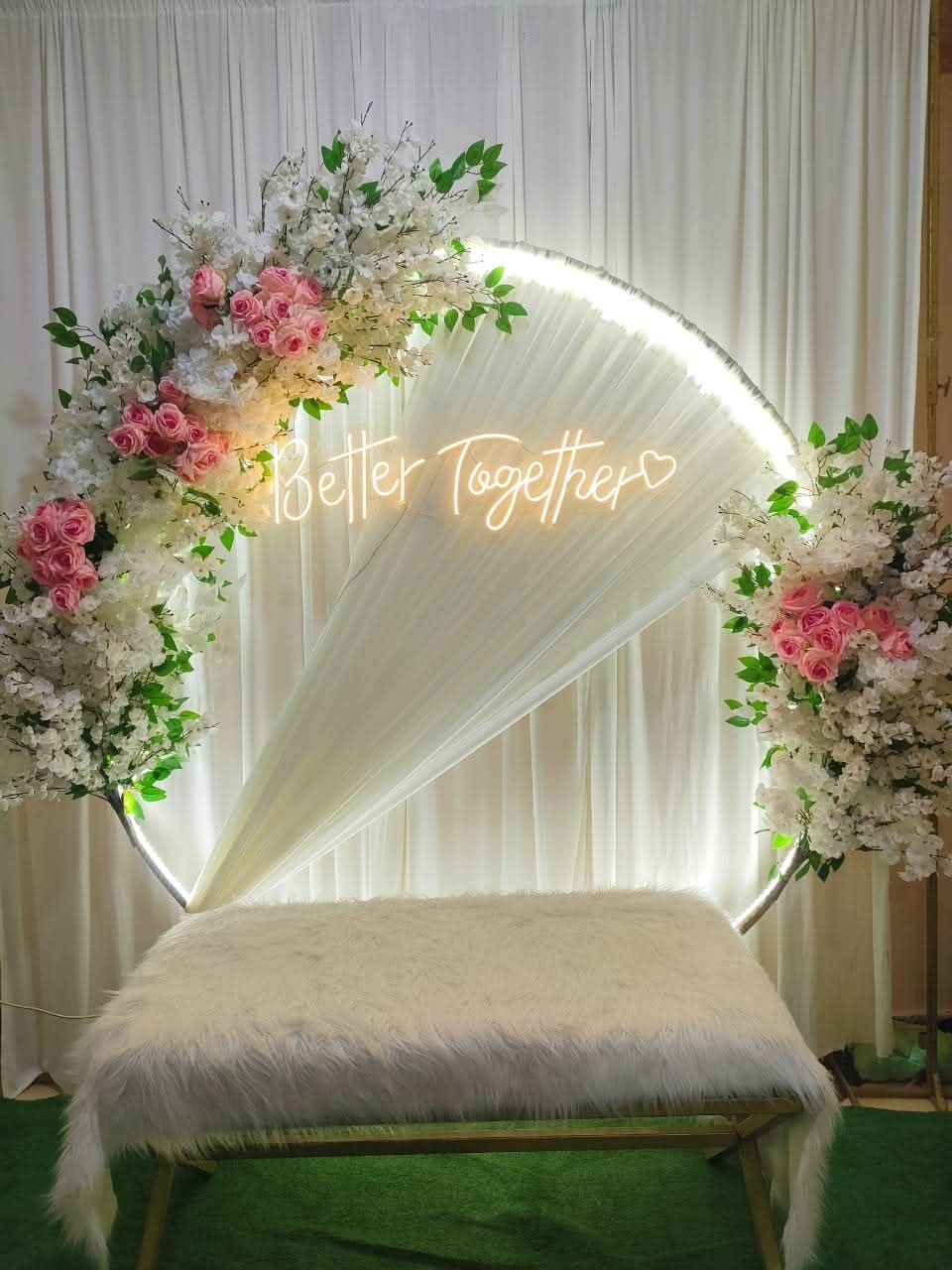 الكوشة عندهم دايمًا ليها شكل مميز، لأنهم بيهتموا إنها تكون مركز الديكور، وتكون معمولة بشكل يليق بالعريس والعروسة ويبان في الصور. وكمان بيركزوا على الإضاءة، لأنهم عارفين قد إيه الإضاءة بتفرق في شكل الفرح وبتدي للمكان روح خاصة.