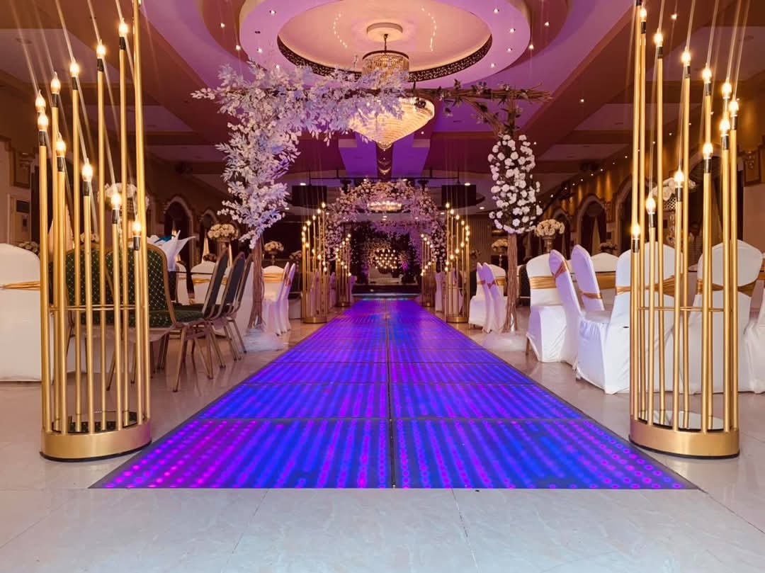 من أهم الخدمات اللي القاعات بتقدمها تجهيز مكان العروسين، لأن المنصة بتكون محور الاهتمام طول الليلة. الاهتمام بتفاصيل المنصة، والمساحة اللي حواليها، والإضاءة المناسبة بيفرقوا جدًا في الإحساس العام وفي شكل الصور كمان. دخول العروسين بيبقى لحظة مهمة، ولما المكان يكون متظبط كويس اللحظة دي بتمشي بسلاسة ومن غير أي لخبطة.