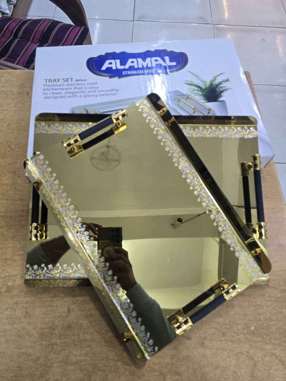 لو مهتمة بأطقم التقديم، فـ الغزولى موفر تشكيلة كبيرة من أطقم الأطباق، المجات، الكاسات، وأطقم الشاي والقهوة. سواء كان ذوقك كلاسيكي أو مودرن، هتلاقي اللي يناسبك، وكمان معاهم صواني تقديم بأشكال وألوان متنوعة تليق بالمناسبات أو الاستخدام اليومي.