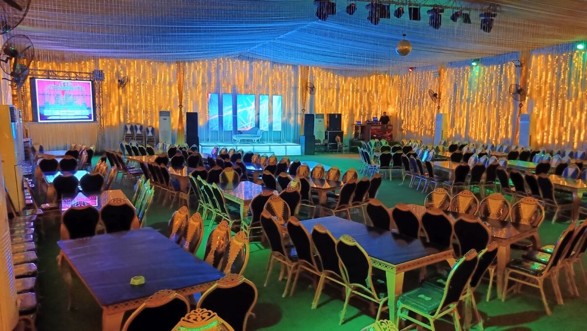 القاعة مساحتها متوسطة ومناسبة للمناسبات اللي فيها عدد ضيوف مش كبير أوي، وده بيدي إحساس بالخصوصية والتنظيم. توزيع الترابيزات والكراسي مرن، يعني ممكن ترتبهم بالشكل اللي تحبه، سواء على شكل صفوف أو دواير أو تنظيم تقليدي للحفلات.