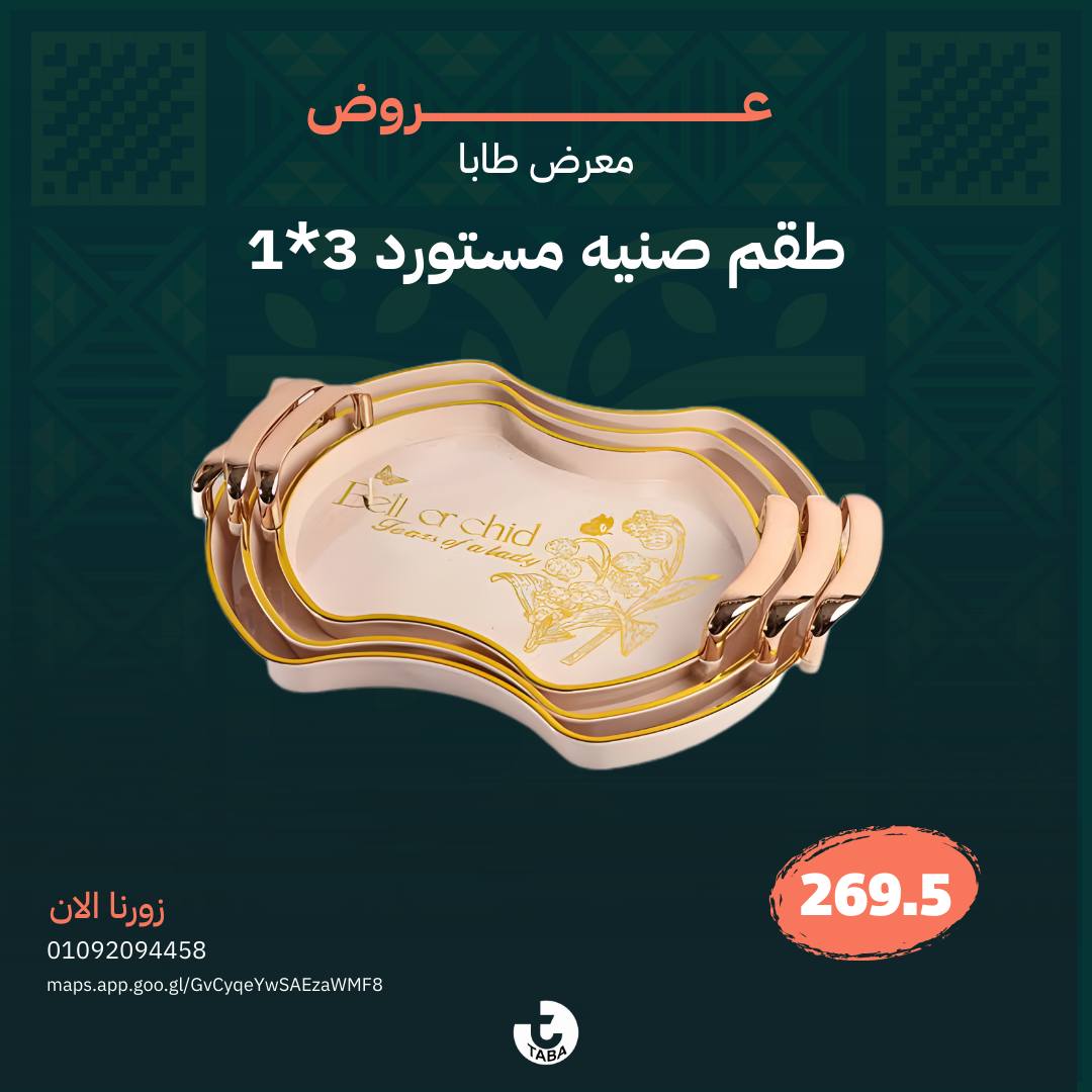 اللي بيميز طابا للأدوات المنزلية إنه بيقدّم منتجات بجودة عالية وسعر مناسب، وبيهتم بتوفير أحدث التصميمات اللي تناسب كل الأذواق، سواء بتحبي الشكل الكلاسيك أو المودرن.