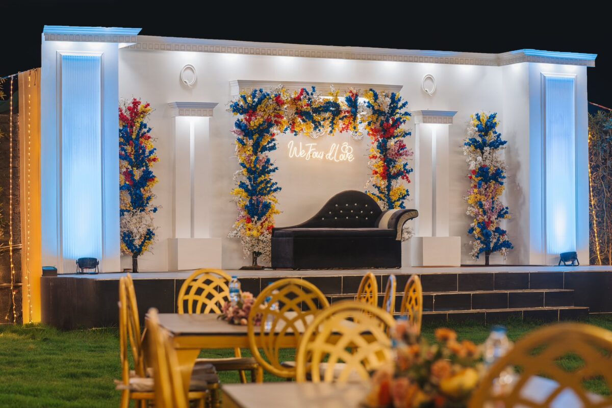 إضاءة موزعة بشكل عملي تناسب كل لحظة في الحفل من العشاء الهادي للزفة الاحتفالية
