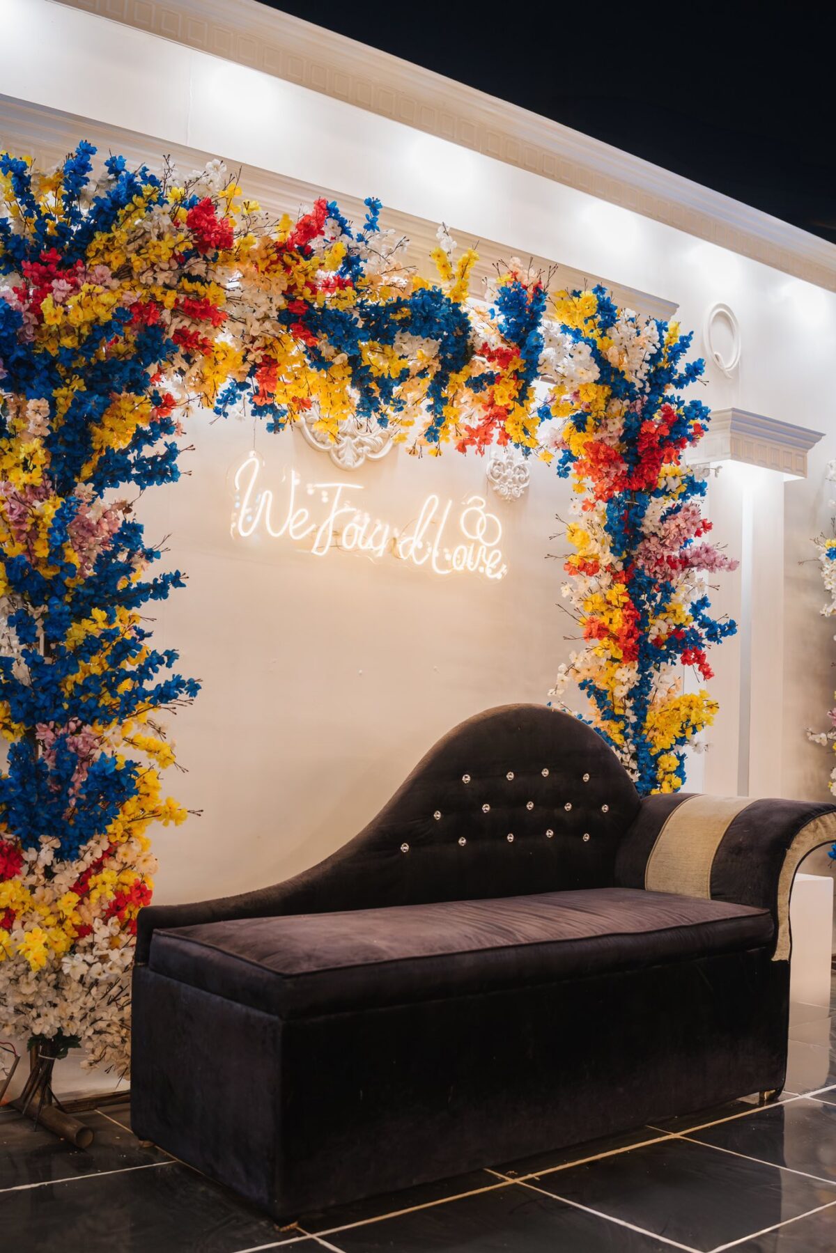 الديكور في لوسيندا بسيط بألوان حيادية بين البيج والأوف وايت وده بيساعد تضيف لمستك الخاصة سواء ورود طبيعية أو ستاندات إضاءة أو ثيم الحفل بتاعك الخلفية الخاصة بالكوشة قابلة للتعديل والتنسيق بسهولة لتناسب أي فكرة انت حابب تنفذها