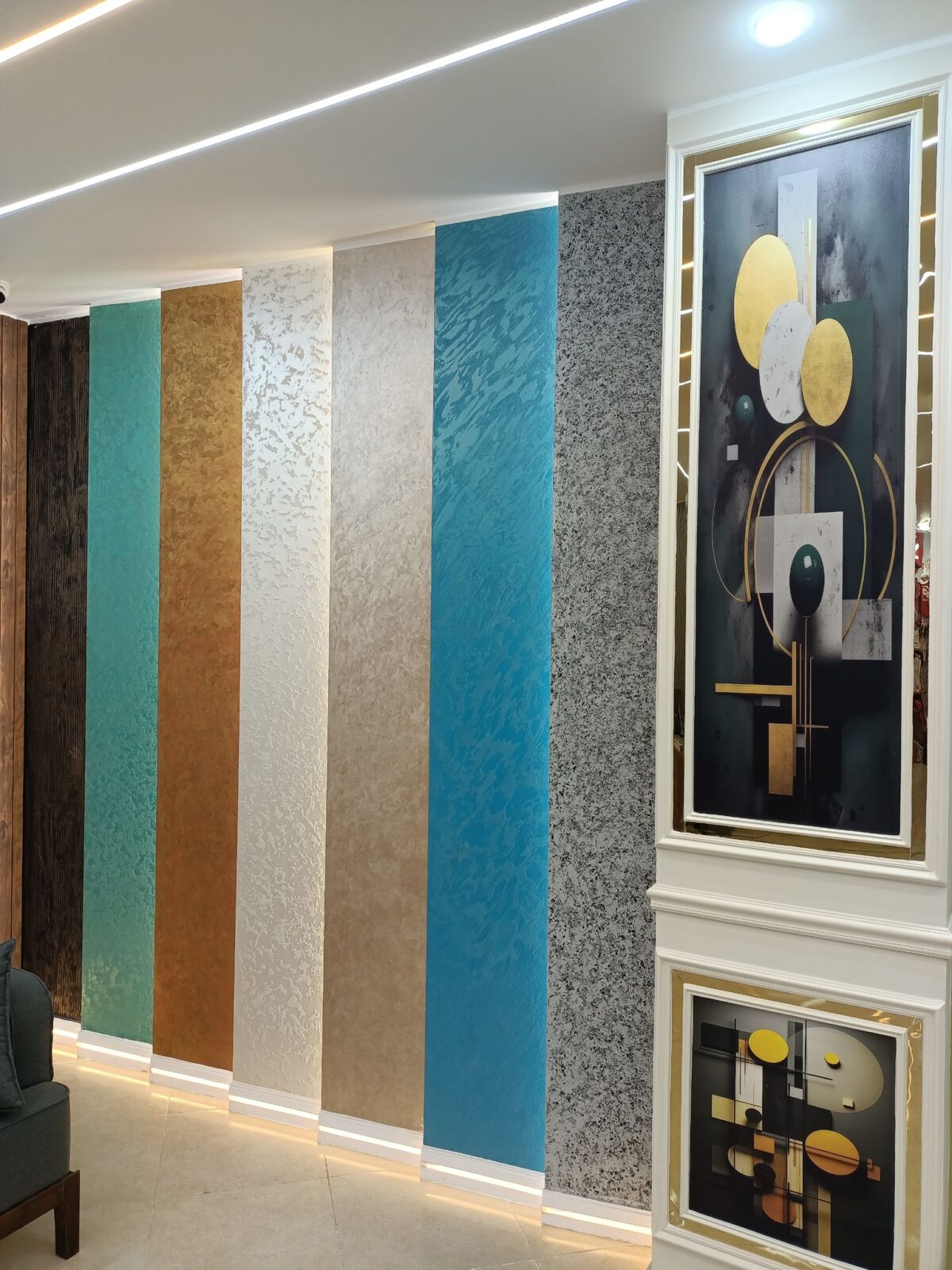 غير الدهانات العادية هتلاقي عندهم دهانات مبتكرة زي Metallic paints اللي بتدي لمعة معدنية ساحرة للحوائط و Pearl effect paints اللي بتخلق انعاكسات ناعمة مع الإضاءة و Textured paints اللي بتضيف بعد مجسَّم للحيطان من غير ما تحتاج تبني بلاطات أو رُخامات وده بيخلي التشطيبات مودرن وبسيطة في نفس الوقت