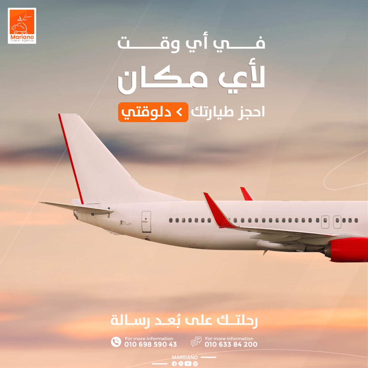 - شراكات ماريانو للسياحة مع شركات طيران وفنادق معتمدة من ٣–٥ نجوم داخل مصر وخارجها لضمان أفضل الأسعار وخيارات تعديل أو إلغاء مجاني.
