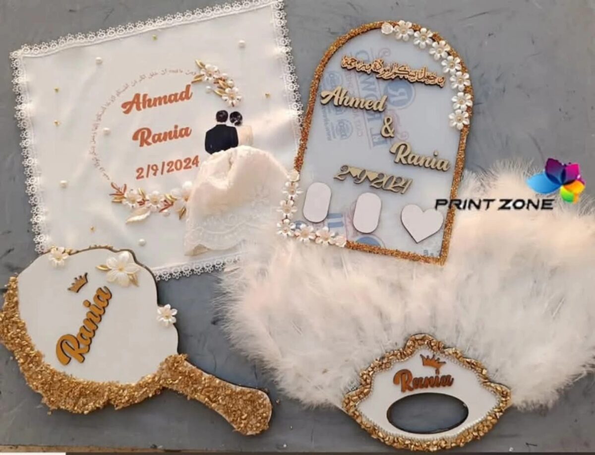 من أول المراية لصينية الشبكة، ومن التاج لبوكيه الورد، Print Zone بيهتم إن كل تفصيلة تبان متكاملة وتليق بيومك الكبير. كل قطعة معمولة بحب عشان تخلي يومك مميز، وصورك تبقى مليانة أناقة وشياكة.