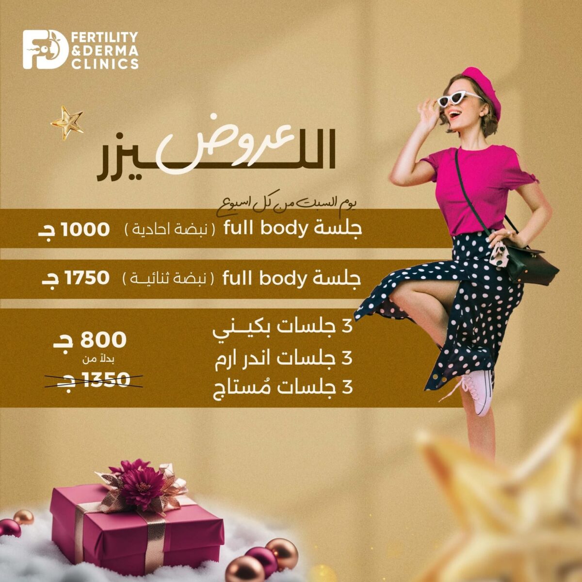 ومن أهم الخدمات كمان اللي بيقدموها في فيرتي ديرما جلسات تجميل الجسم، زي نحت القوام وشد الجلد وتفتيت الدهون باستخدام أجهزة حديثة وآمنة. الجلسات دي بتساعد في تحسين شكل الجسم وتنسيقه قبل الفرح، وبتكون مفيدة جدًا لأي عروسة بتجهز لفستانها أو عريس بيظبط فورمته قبل البدلة. النتائج بتكون تدريجية وطبيعية وبتدي ثقة كبيرة قبل اليوم الكبير.