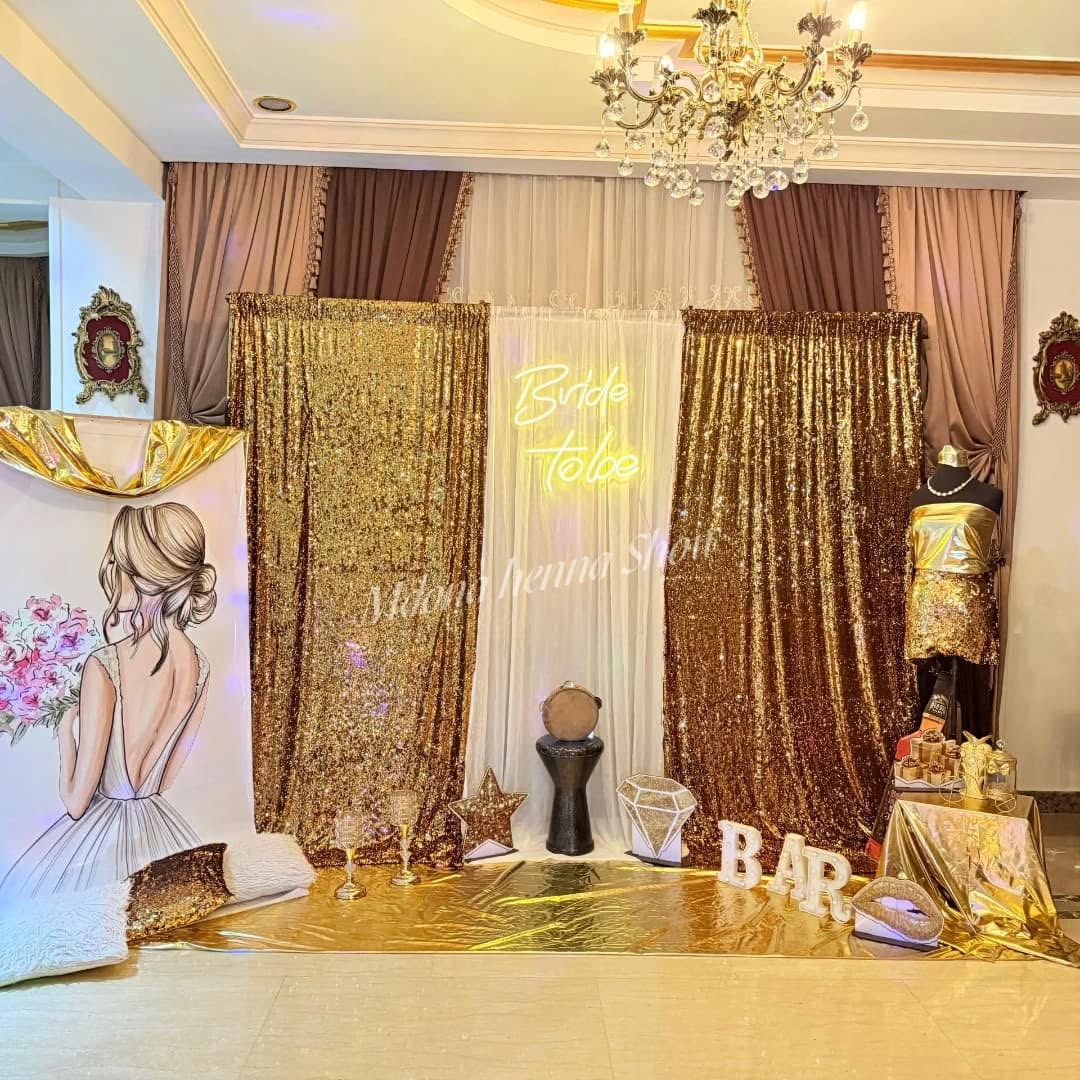 خدمة لبس الحنة مع Mdona henna show بتكمل التجربة. بيتم توفير فساتين وكفتان وجلابيات مصممة مخصوص لليلة الحنة، معمولة من خامات زي الساتان، الكريب، والشيفون. القطع مطرزة يدوي بألوان متناغمة مع لون الحنة سواء أبيض أو ذهبي. اللبس بيتجهز بمقاسك المظبوط علشان تكوني مرتاحة طول السهرة.