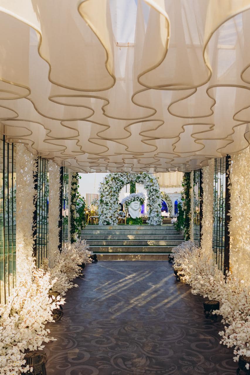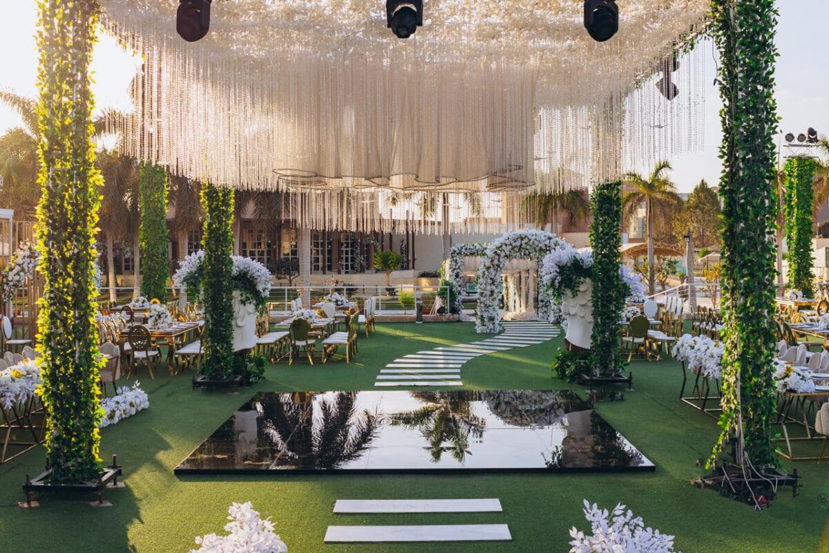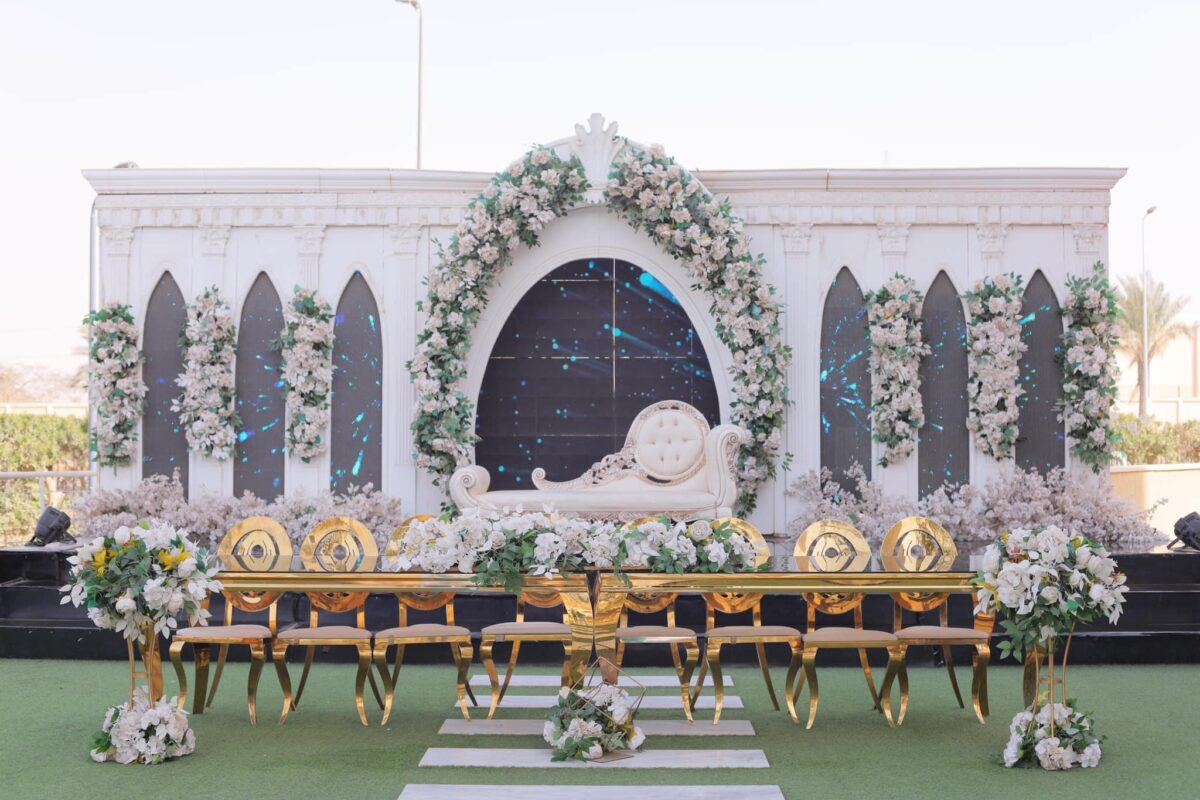 اختيار الديكورات بعناية من الأفضل التنسيق مع إدارة القاعة لاختيار الديكورات المناسبة للأجواء المفتوحة وتعكس الذوق الشخصي