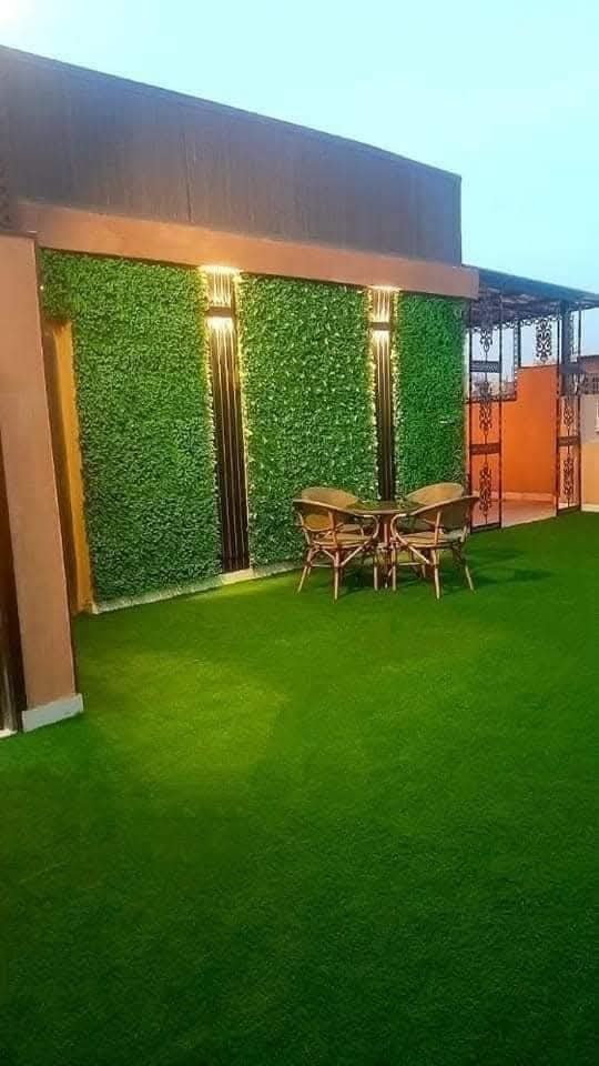أما النجيل الصناعي فبيستخدم بشكل يدي إحساس بالمساحات المفتوحة، سواء في البلكونات أو الجاردن أو حتى داخل البيت كجزء من الديكور. اللون الأخضر بيساعد على تهدئة الجو العام وبيخلي المكان مريح للعين.
