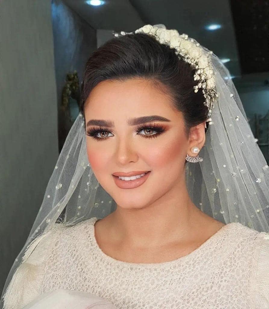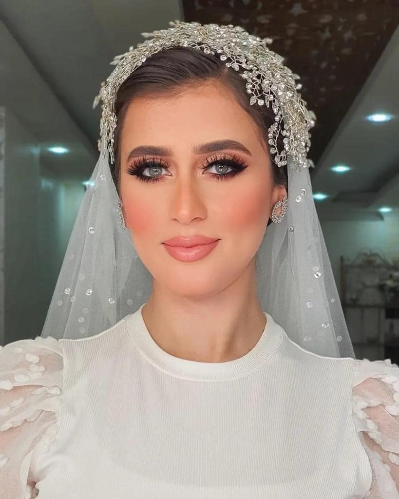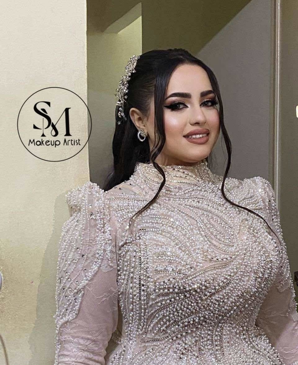 في مكياج العرايس، سلمى بتحب تشتغل على إبراز الجمال الطبيعي. بتستخدم ألوان ناعمة ومتدرجة، وبتختار درجات الفاونديشن بعناية عشان تطلع النتيجة ناعمة ومن غير أي فرق في اللون. كمان بتركز على الهايلايت والكونتور بشكل خفيف يخلي الملامح باينة وواضحة بس من غير ما تكون تقيلة.