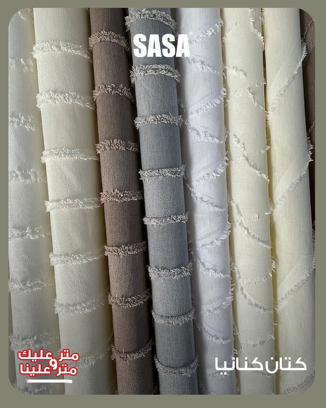 SASA بيشتغل بفكرة بسيطة وواضحة: تختار قماش يناسب استخدامك، نحدّد المقاسات بدقة، يتفصّل الشغل ويتعلق تركيب مظبوط. النتيجة ستارة شكلها رايق، وتتحمّل الاستخدام اليومي من غير ما تحتاج صيانة معقدة أو ميزانية كبيرة.