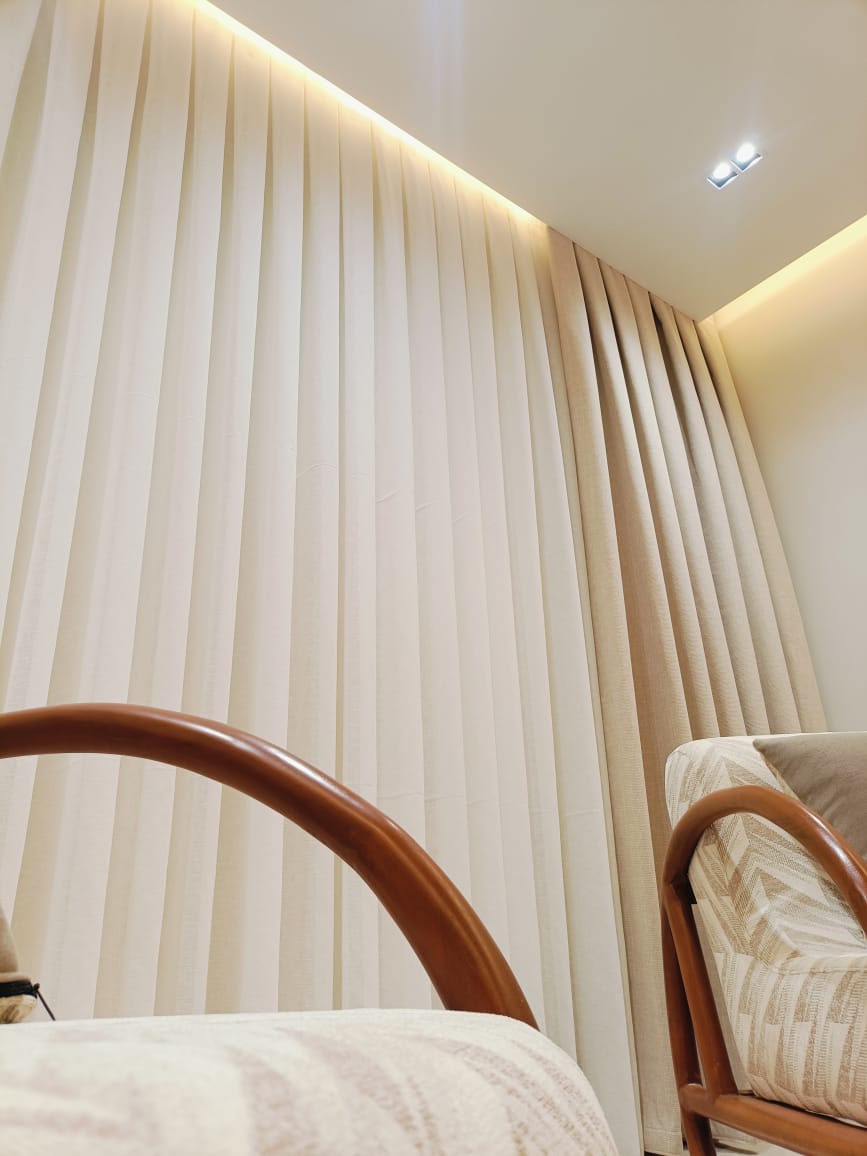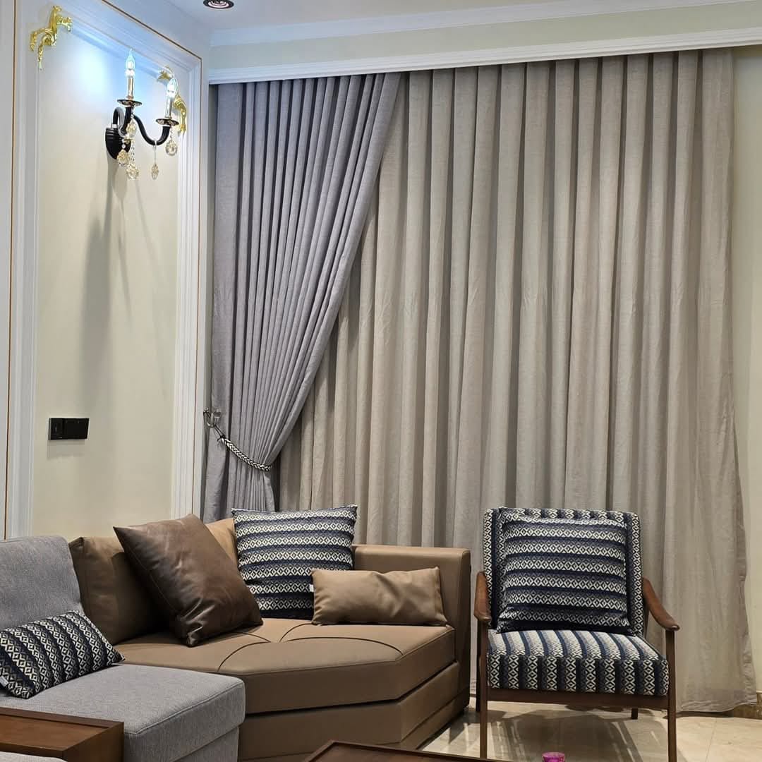 تقدر تختار قماش سادة أو بنقشة هادية وتعمل ستارة بطبقة واحدة أو اتنين.