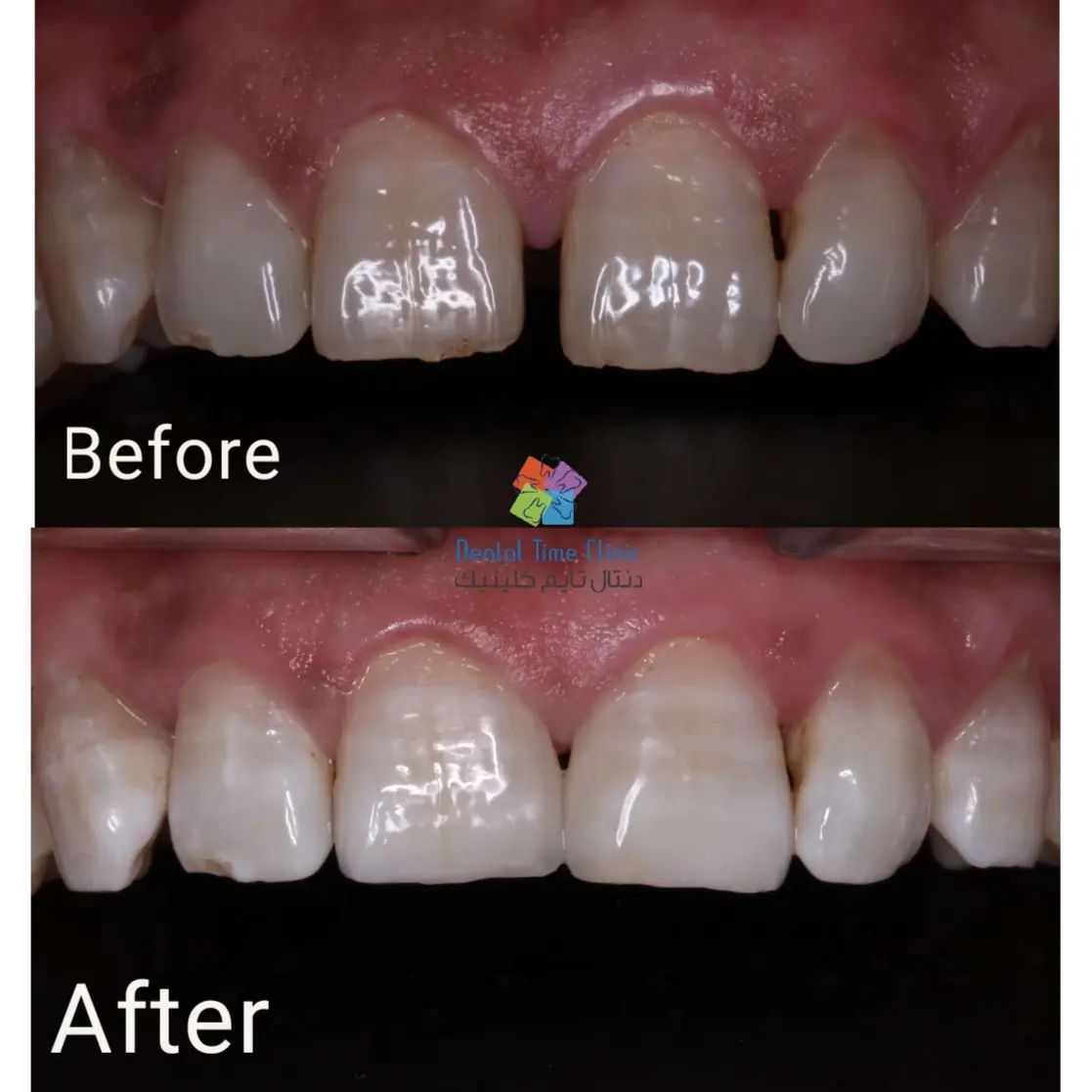 وللي بيفكروا في تبييض الأسنان، Dental Time Clinic بتقدم جلسات تبييض محترفة في العيادة باستخدام جل تركيزه مضبوط وتنشيط ضوء خاص بيرفع درجة بياض الأسنان من ٣ لحد ٦ درجات في جلستين أو تلاتة حسب حالة حساسية لثتك. والميزة إنك بعد أول جلسة هتحس بالفرق، والفريق بيسلمك جل منزلي مع جدول استخدام يومي ونصايح عن المأكولات والمشروبات اللي لازم تتحاشاها شوية عشان تحافظ على البياض لأطول وقت.