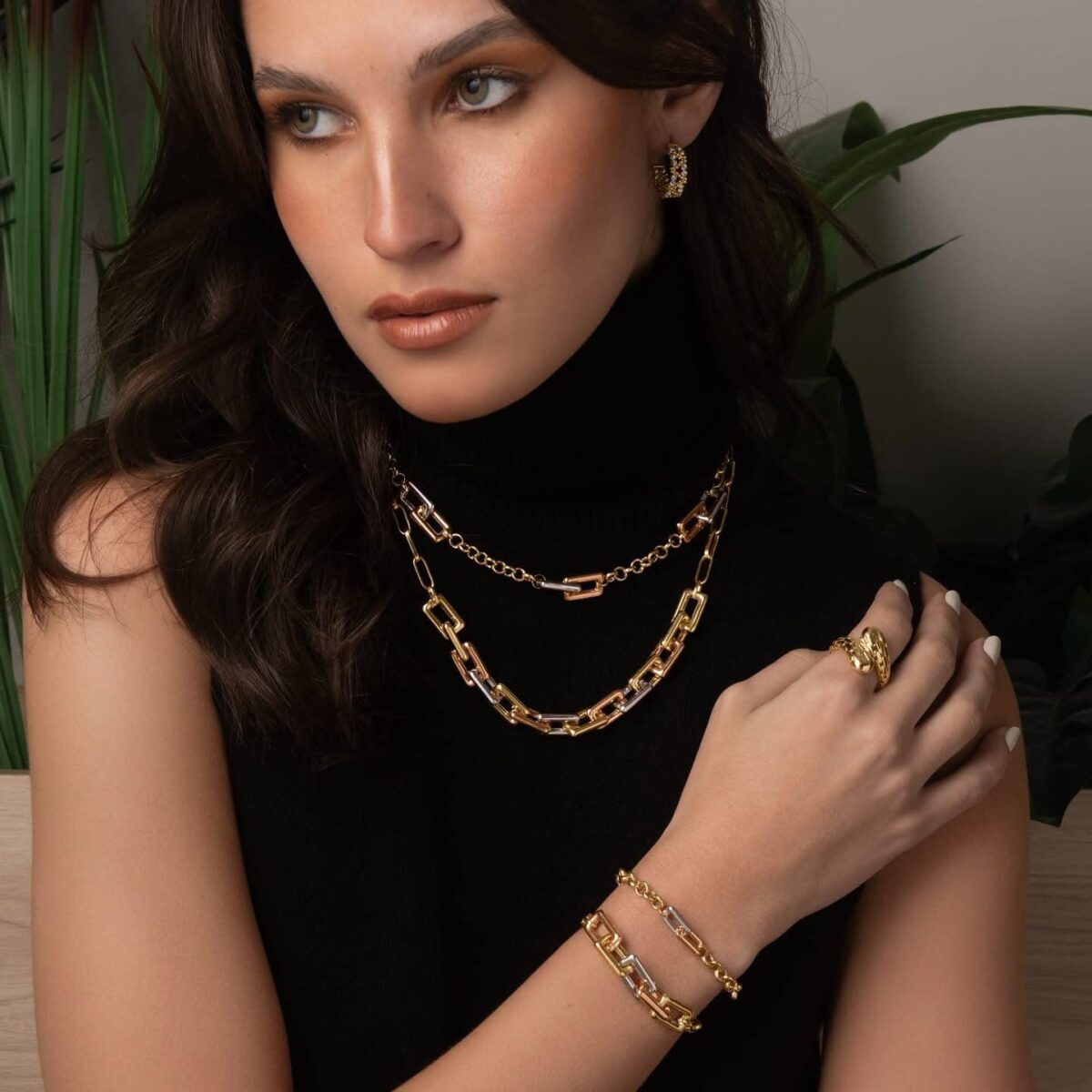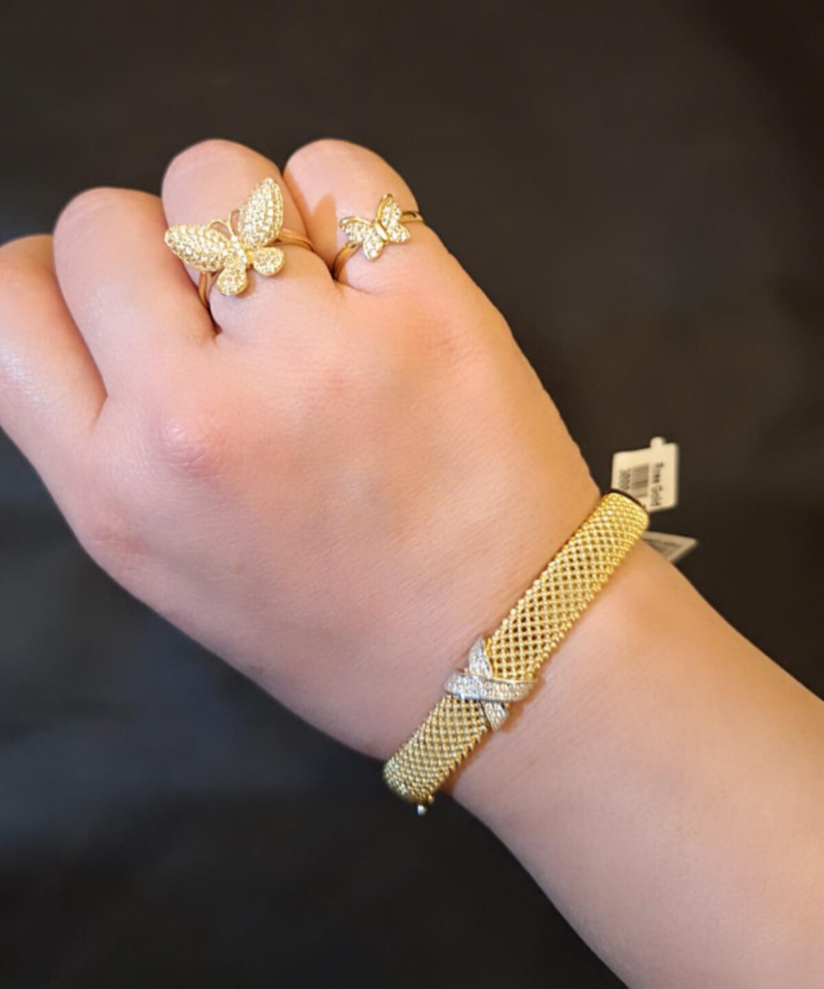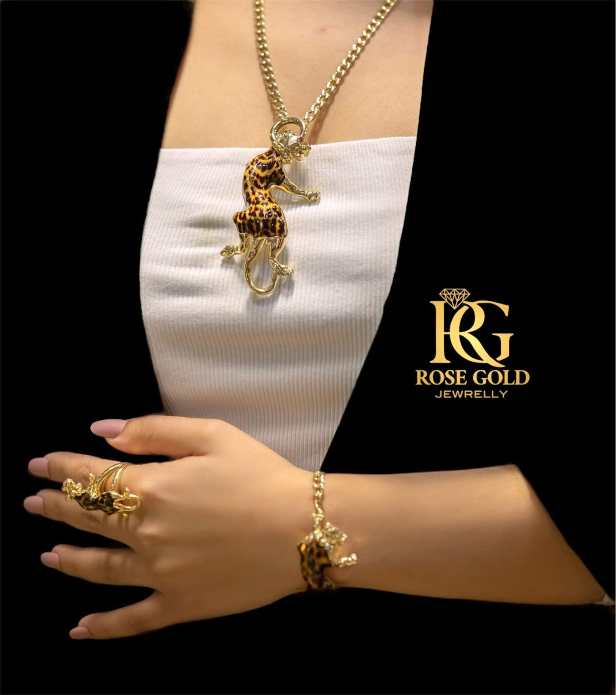 في Rose Gold هتلاقي تشكيلات متنوعة من الدهب، من أطقم عرايس أنيقة، لخواتم خطوبة وسلاسل وأساور مصممة بدقة، وكل قطعة هناك بتعكس ذوق خاص وشغل متقن. القطع معمولة بخامة نضيفة تفضل محافظة على شكلها ولمعتها، وتعيش معاك سنين.