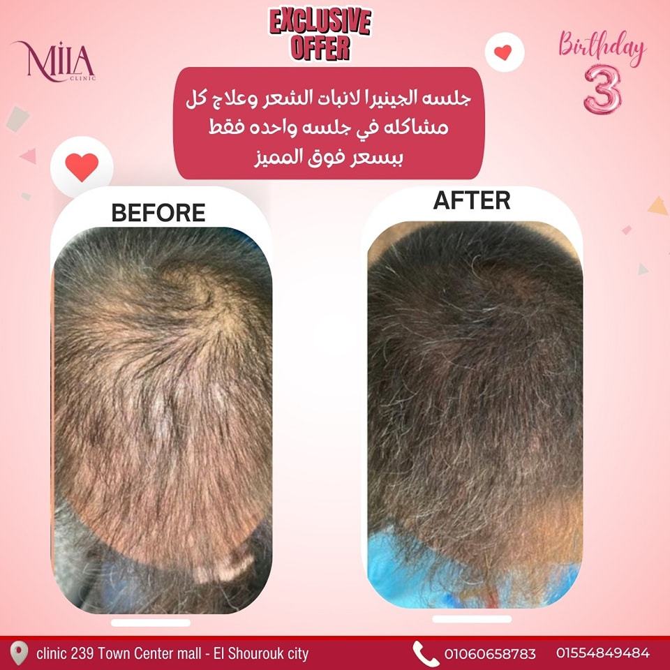 لو عندك مشكلة في التساقط أو الفراغات، الجلسات بتشمل ميزوثيرابي أو بلازما، وبيتم تحديد الخطة حسب نوع المشكلة ومدى تقدمها.