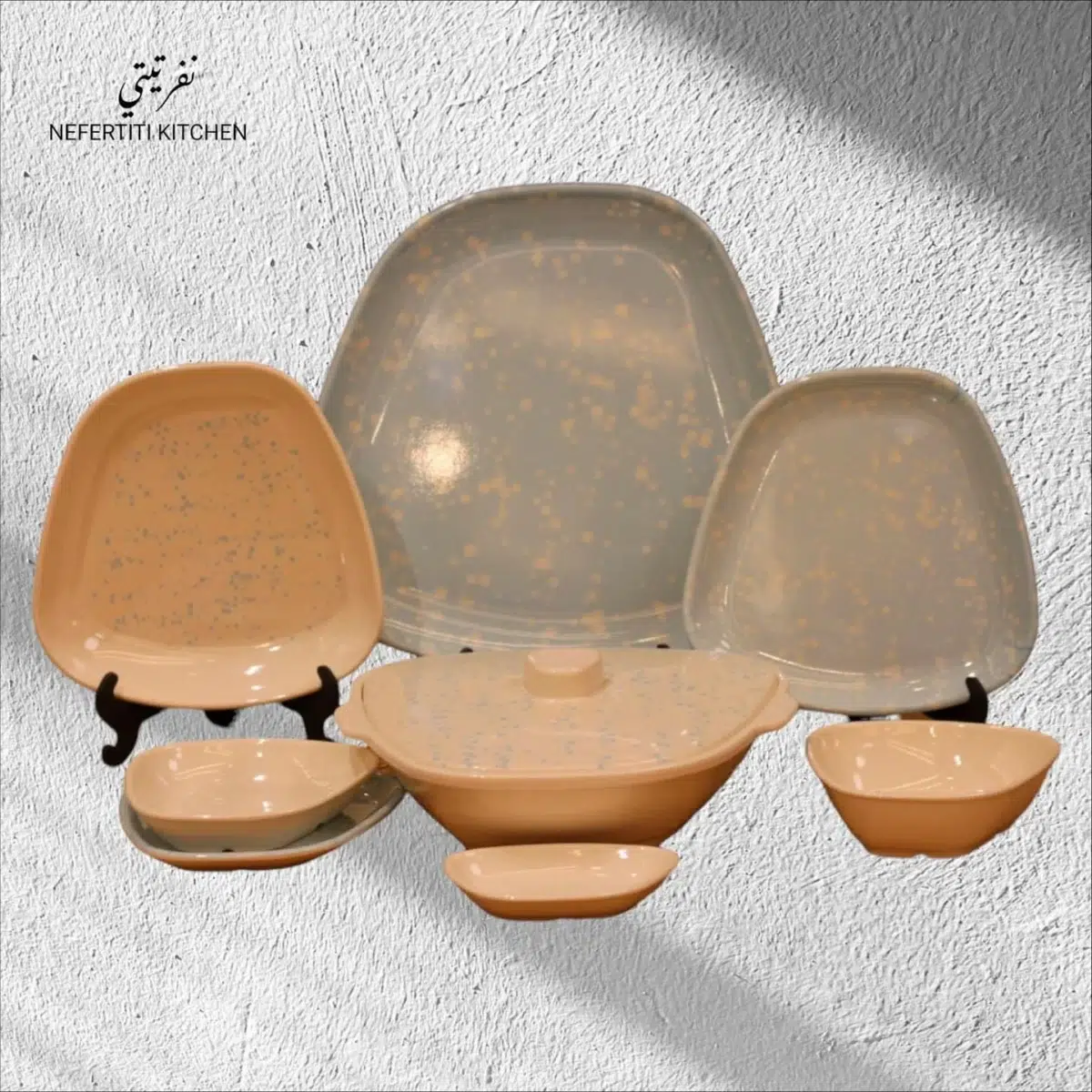 • لو بتهتم بضيافة الضيوف، ركّز على أطقم السيراميك والبورسلين مع النقشات الذهبية أو الفضيّة.