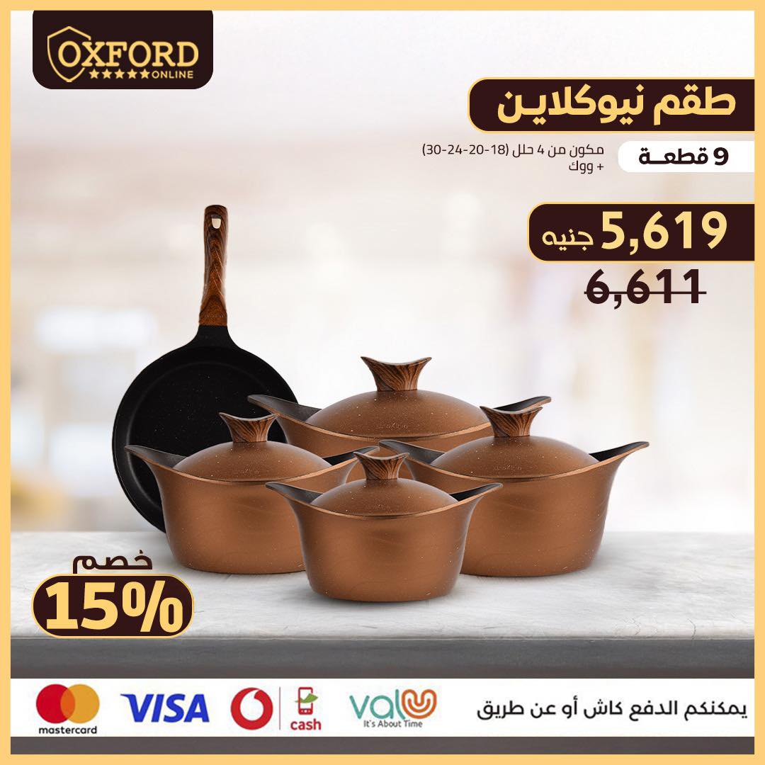 أول ما تدخلي Oxford Online، هتلاقي الأقسام واضحة ومقسمة بطريقة تخليكي تعرفي توصلي للحاجة اللي عايزاها بسهولة. في قسم أدوات المطبخ، هتلاقي تشكيلات من أطقم الحلل والطاسات اللي بتيجي بخامات قوية زي الجرانيت والتيتانيوم والتيفال، وبتتوفر بألوان وتصميمات تناسب الذوق المودرن. كمان الطاسات الجريل، صواني الخَبز، وأدوات السيليكون كلها موجودة، ومعاها كمان أكسسوارات للطهي زي المعالق الخشب، المقاشط، والملاقط.