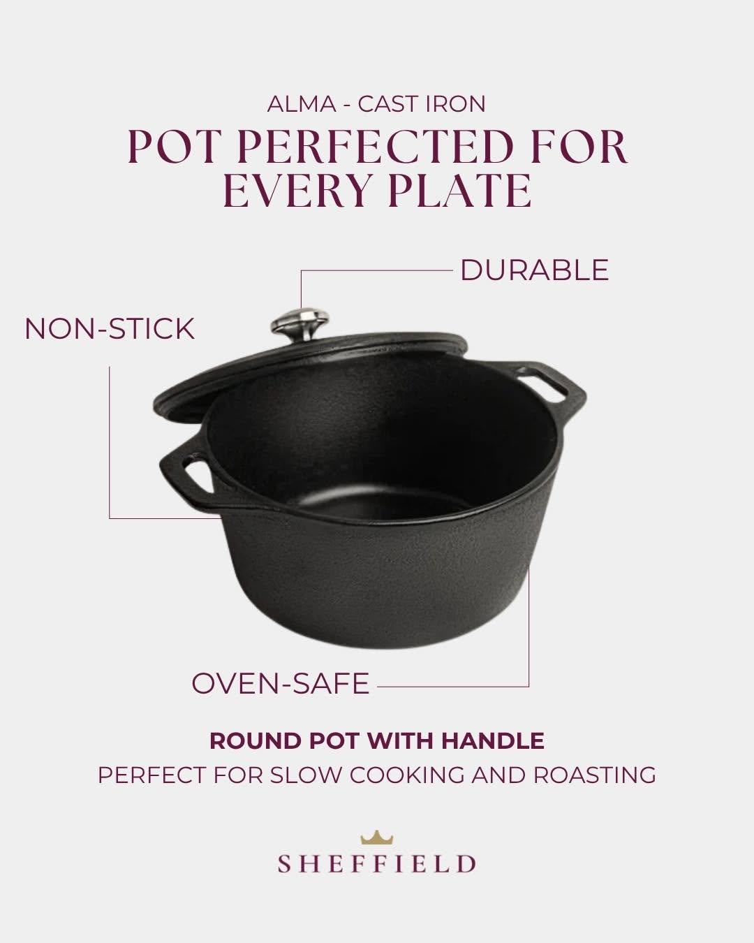 في قسم الطهي، Sheffield Egypt بتقدّم قدور ومقالي ستانلس ستيل مقاوم للصدأ بخامات ممتازة بتتحمل الاستخدام اليومي وبتوزّع الحرارة بالتساوي. كمان فيه مقالي غير لاصقة بجودة عالية، صواني فرن أنيقة، وأدوات طهي عصرية بتسهّل الشغل في المطبخ وتدي شكل أنيق واحترافي.