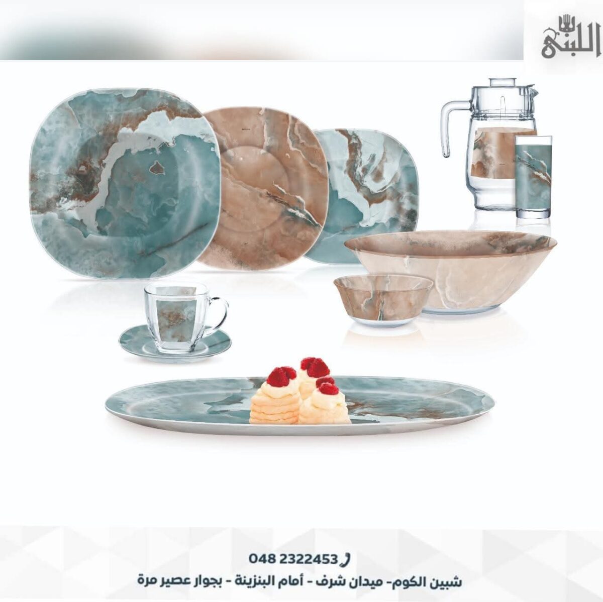 أما قسم السفرة والتقديم، فبيضم أطقم أطباق بورسلين وزجاج بألوان راقية ونقوش بسيطة تناسب المودرن والكلاسيك، وكاسات عصير، فناجين شاي وقهوة، صواني تقديم وأباريق بتصميمات عملية وأنيقة تدي شكل متكامل للسفرة وتخلي الضيافة دايمًا جاهزة.